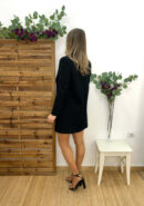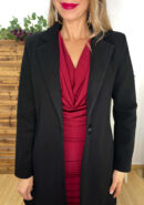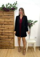 Abrigo de paño en color negro con bolsillos en ambos laterales y botón negro.