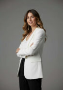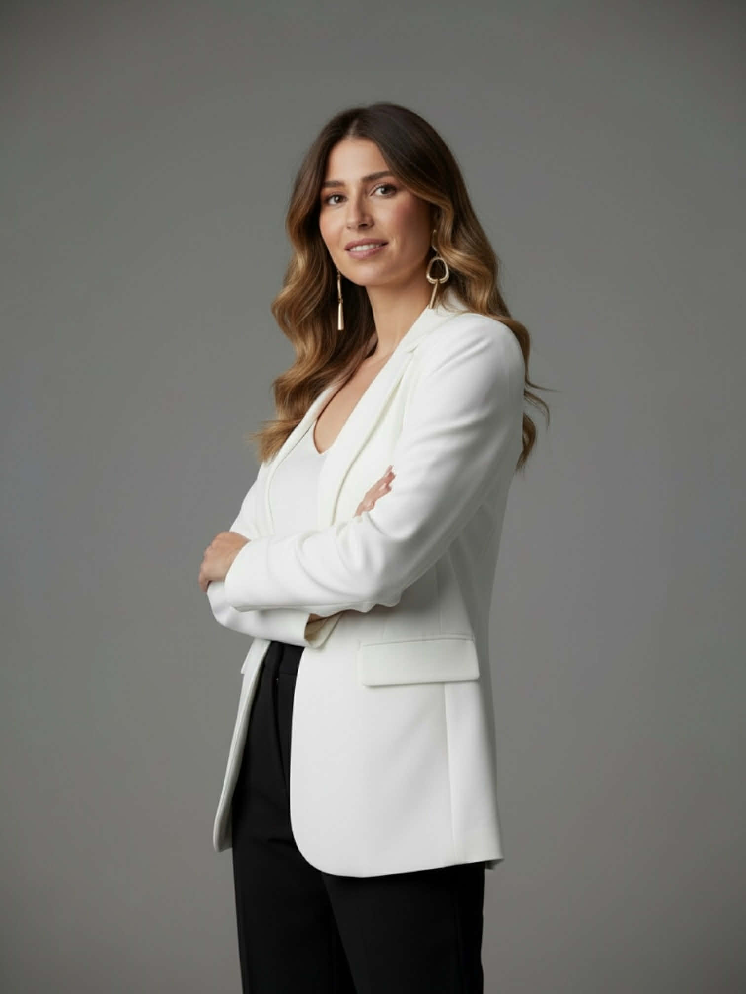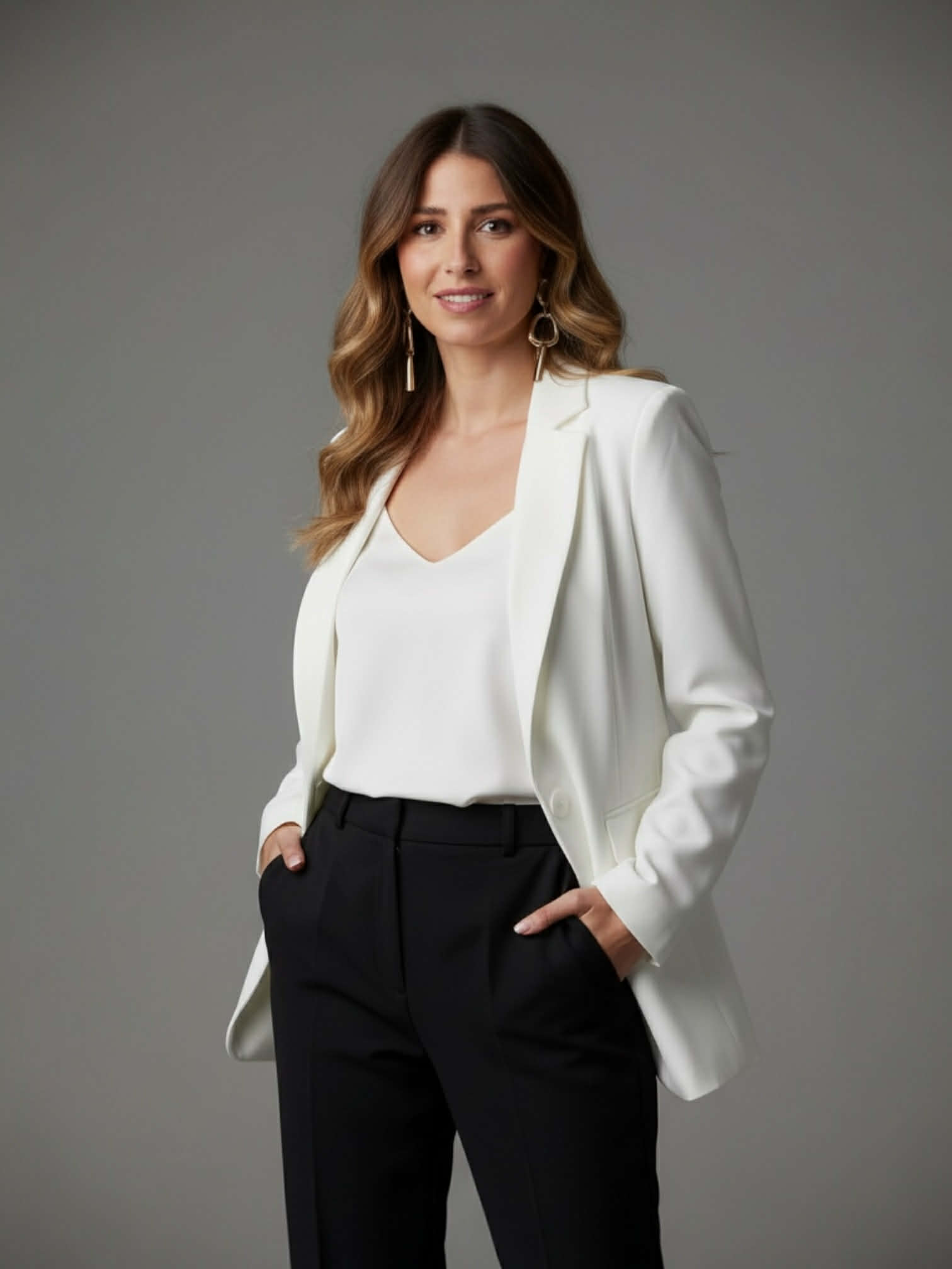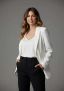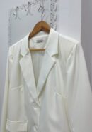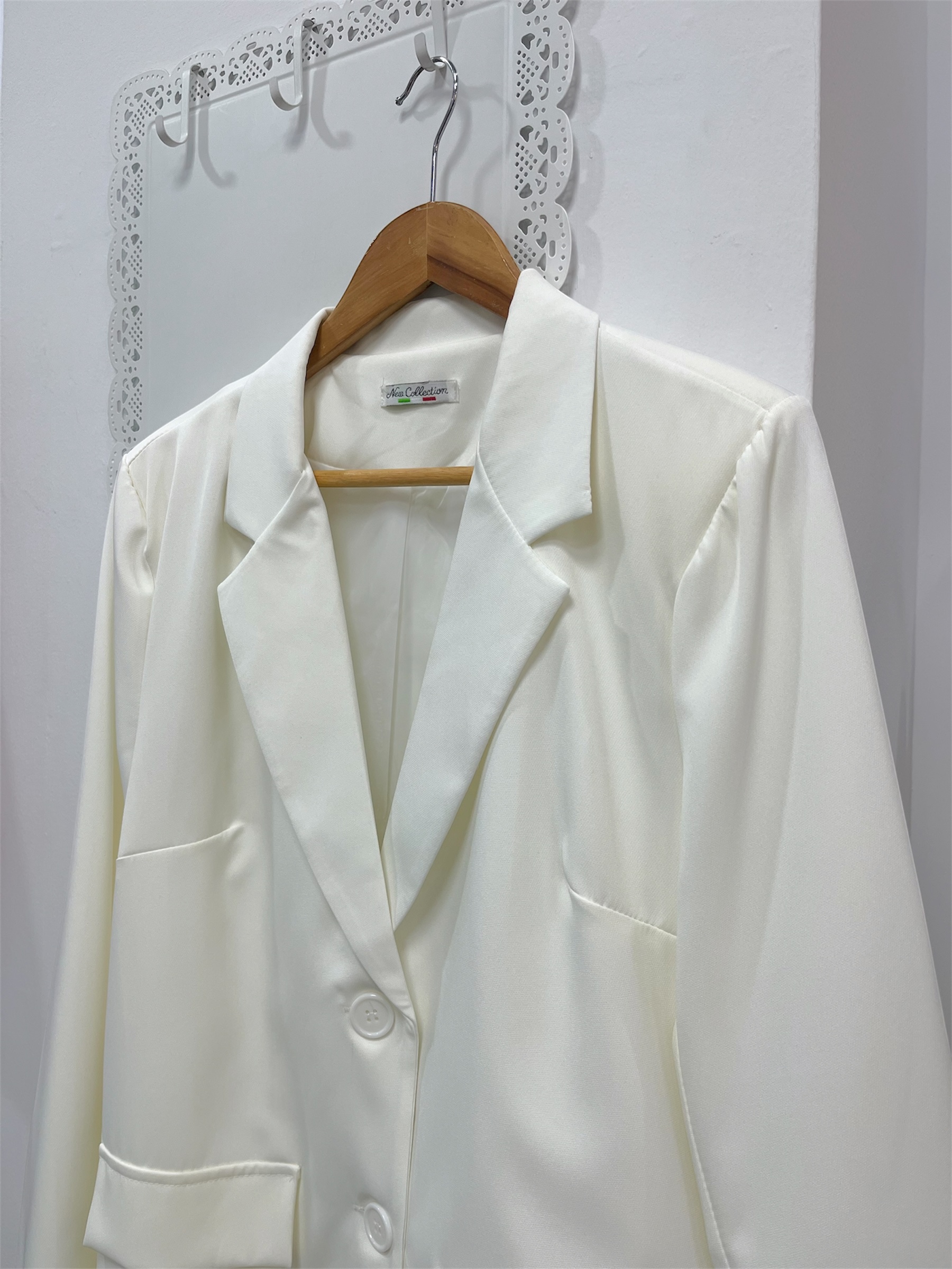 Chaqueta en color blanco de corte long, con solapas en la parte delantera y forro interior.