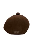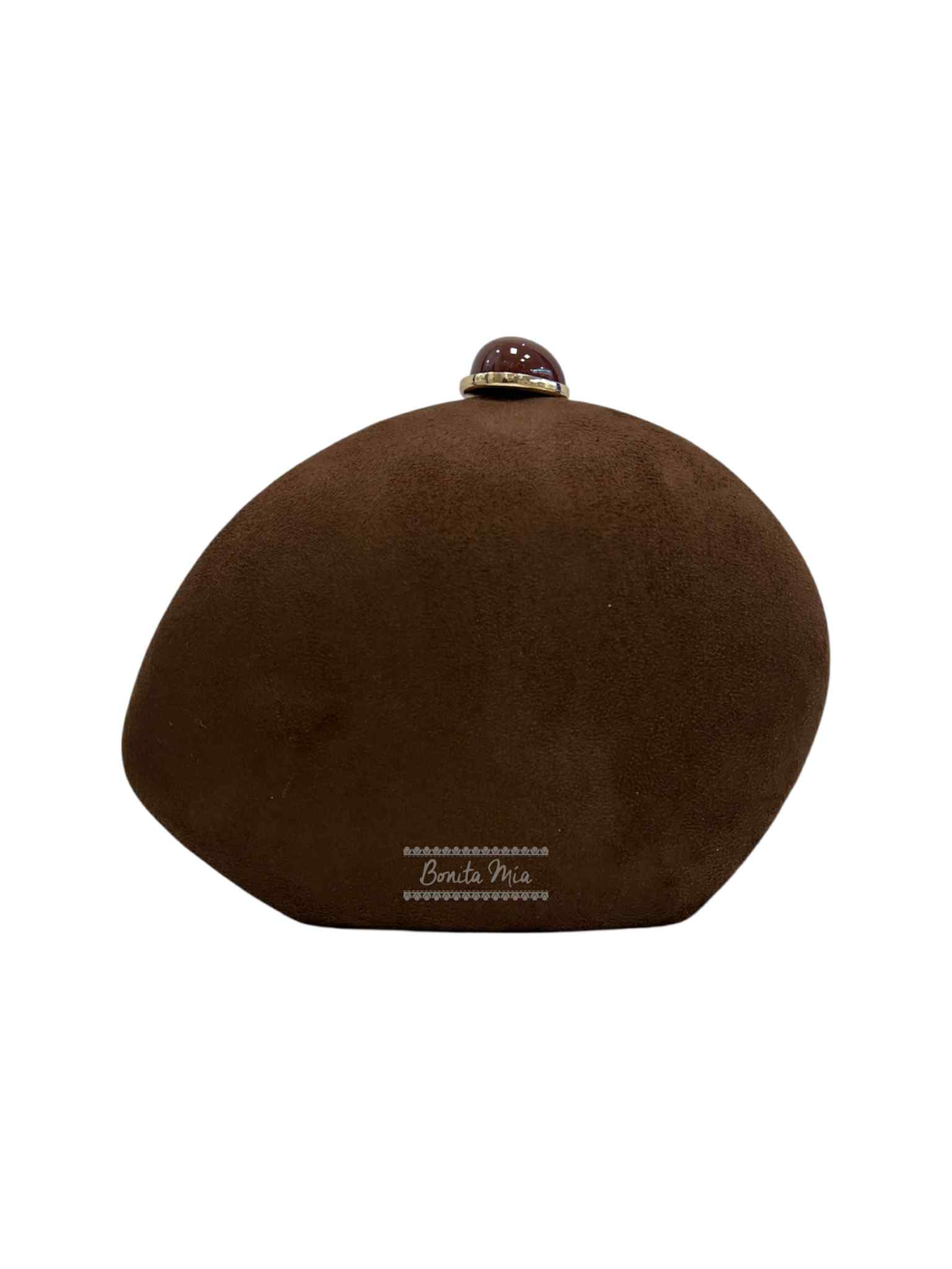 Bolso de fiesta marrón chocolate, tejido antelina en ambas caras . Cierre de click del mismo tono. Incluye cadena para colgar dorada.
