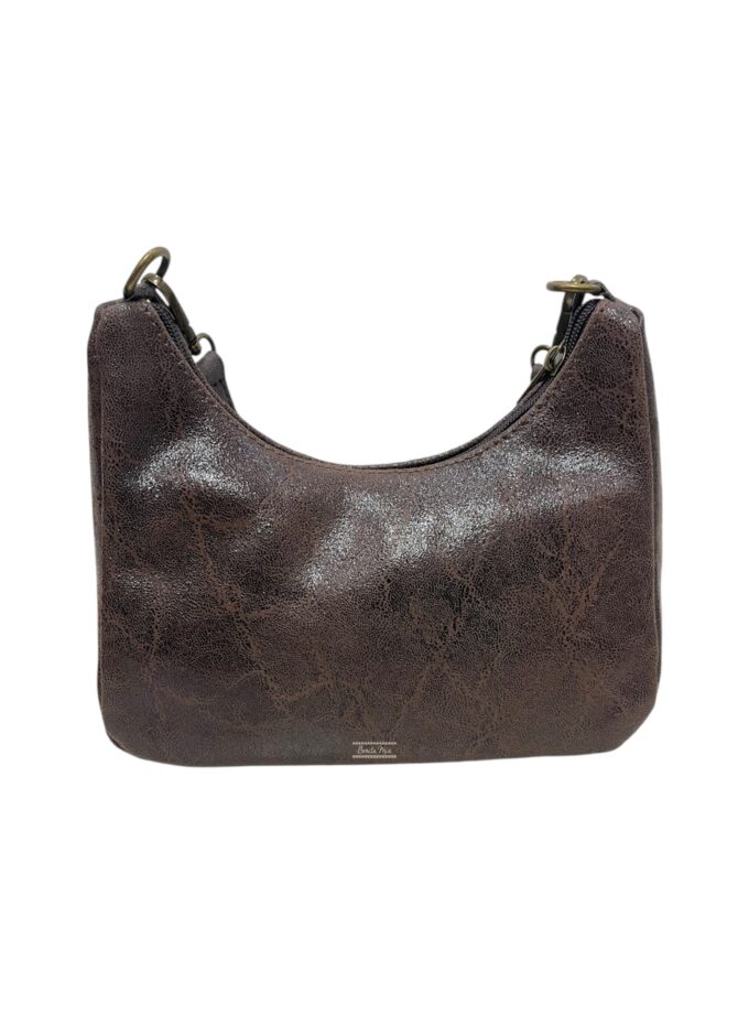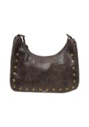 Bolso de piel estilo baguette en color chocolate de serpiente con tachuelas en tono dorado en la parte delantera.