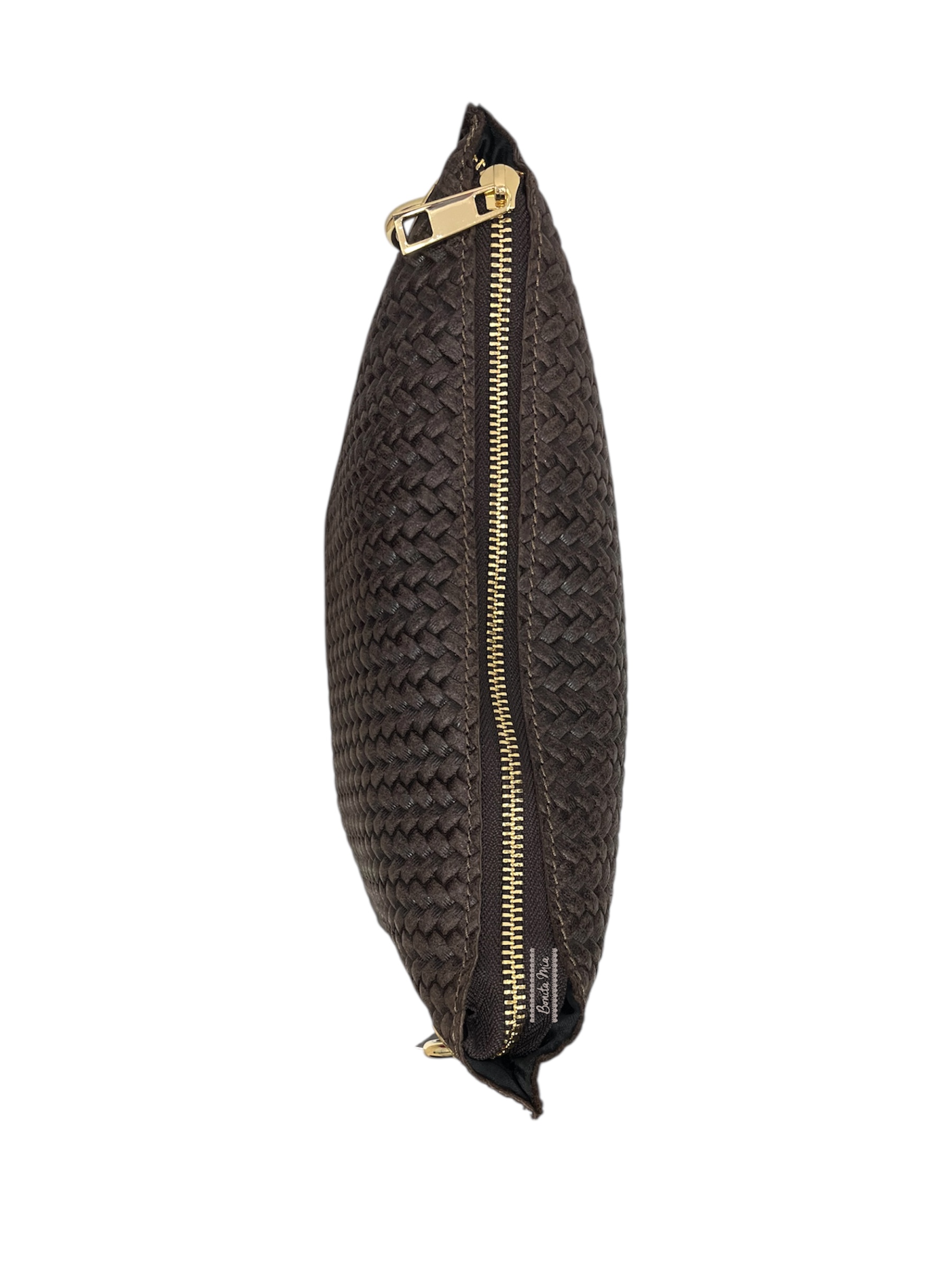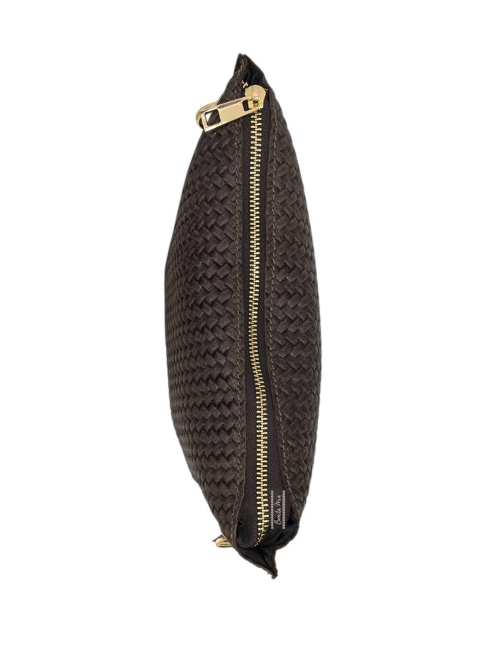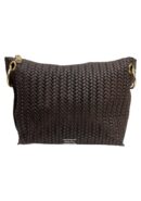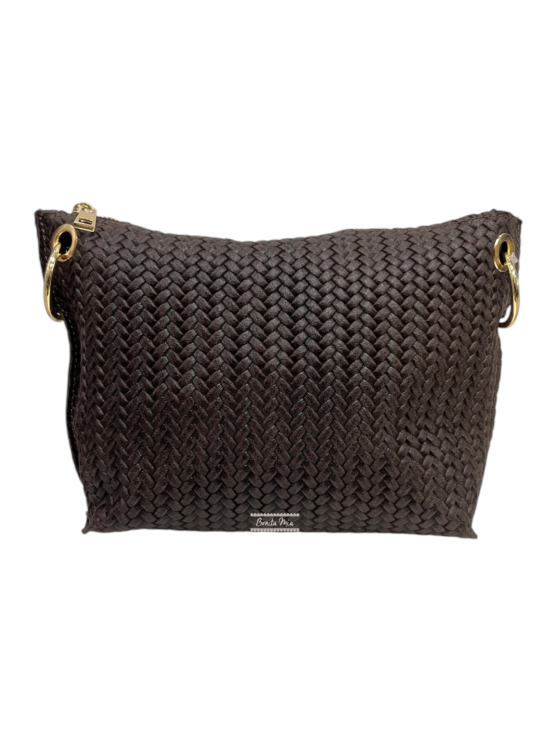 Bolso trenzado de piel estilo bandolera color marrón chocolate.
