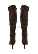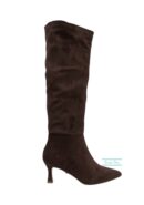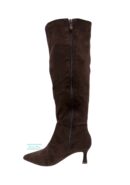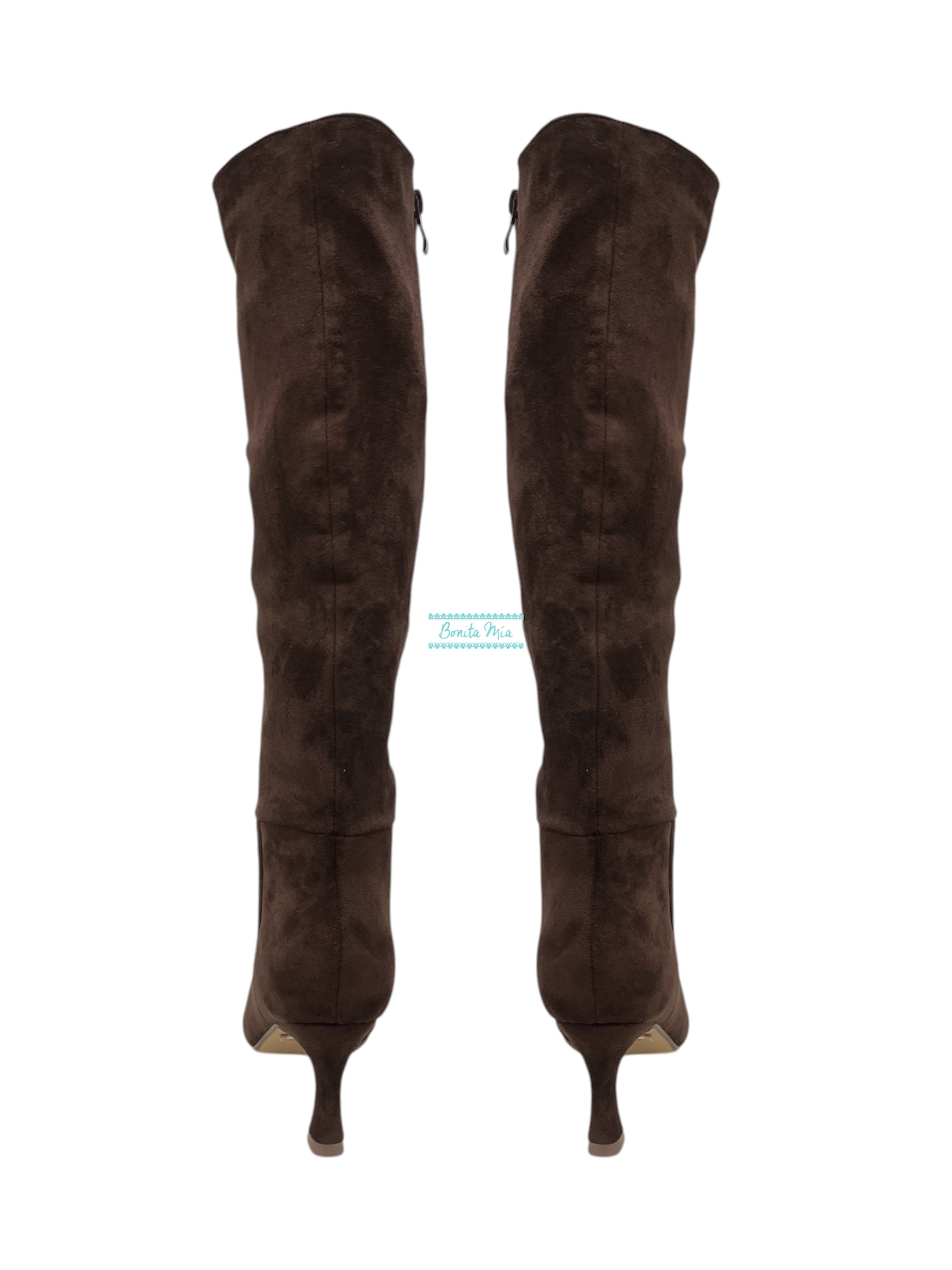 Botas de ante marrón chocolate altas con tacón fino. Cremallera lateral