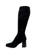 Botas de calcetín negro altas con tacón ancho.