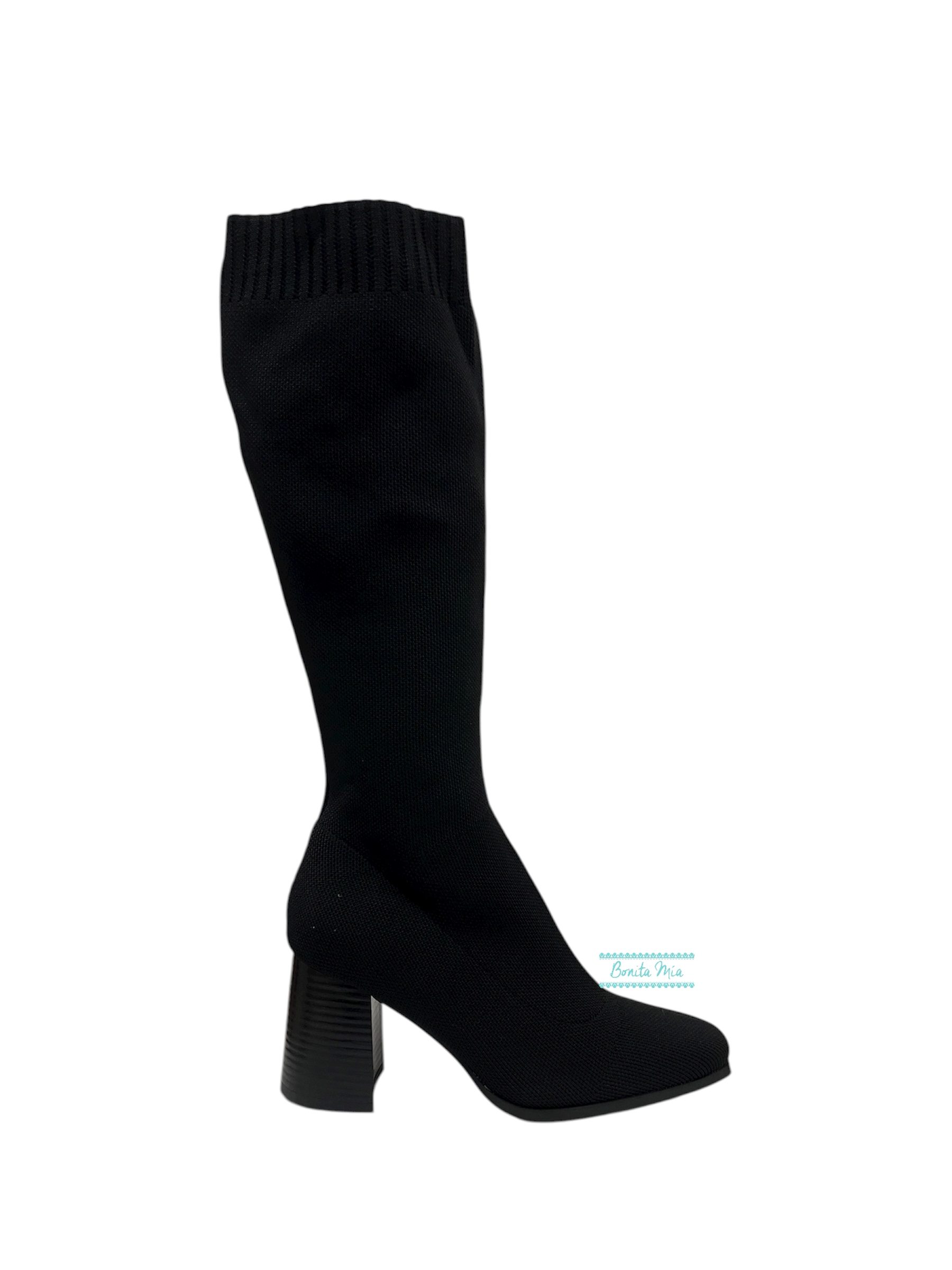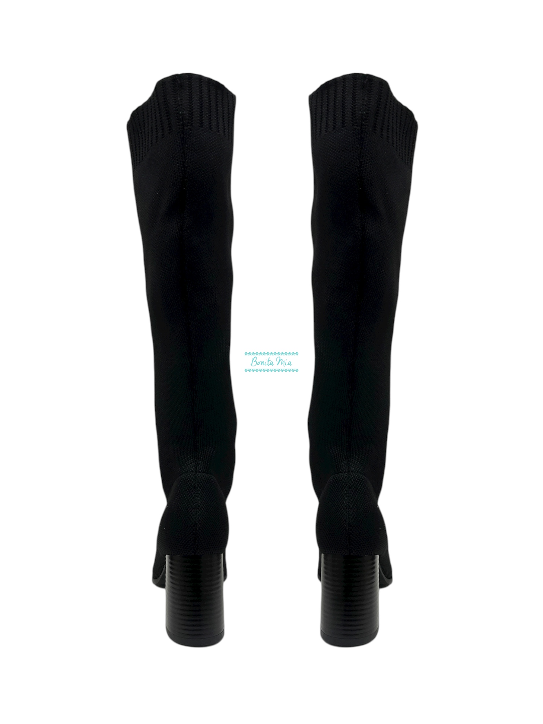 Botas de calcetín negro altas con tacón ancho.