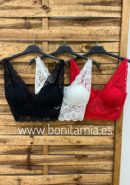 Bralette de encaje negro con tirantes ajustables y cascos.