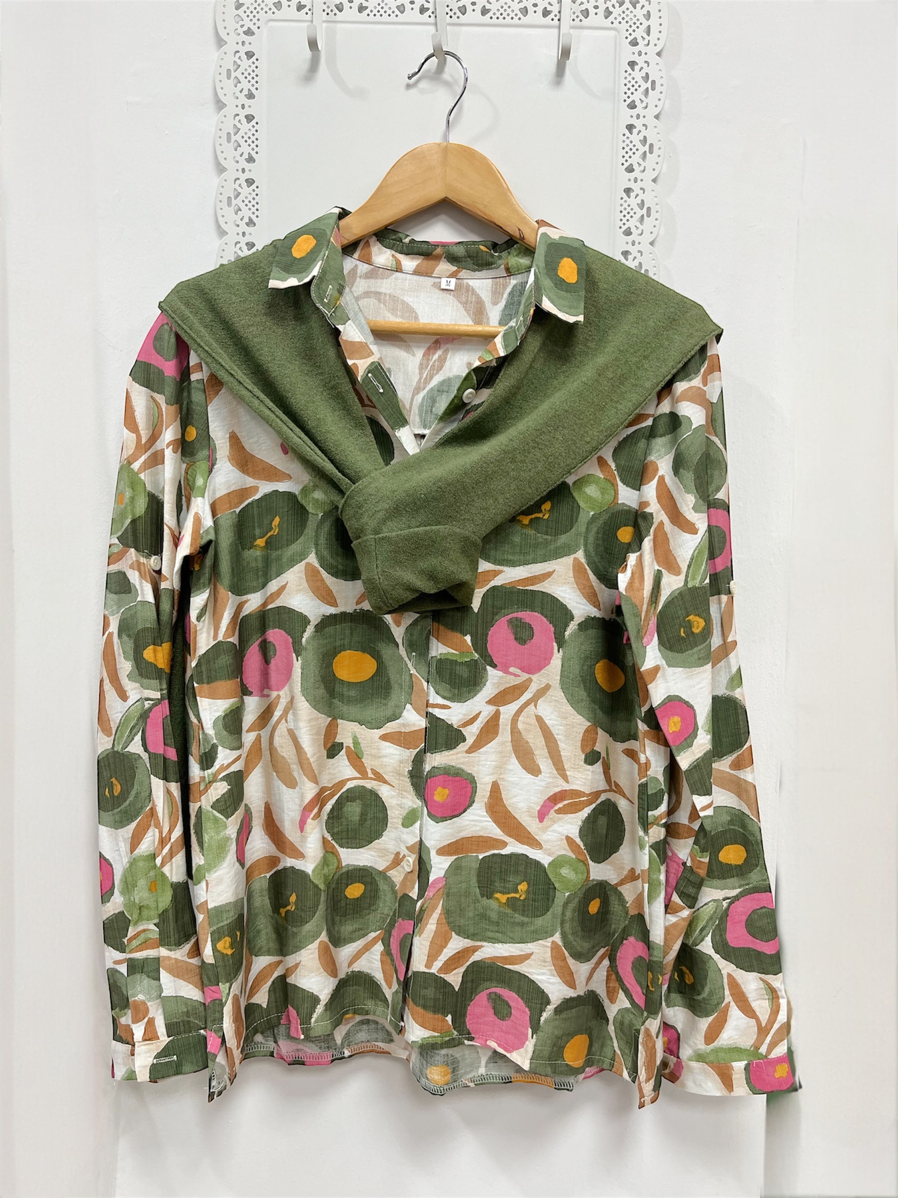 Camisa de estampado floral en tonos verde, rosa, blanco…