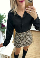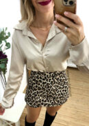 Camisa crop satinada de solapas, botones del mismo tono y goma en la cintura. Colores disponibles: beige y negro.