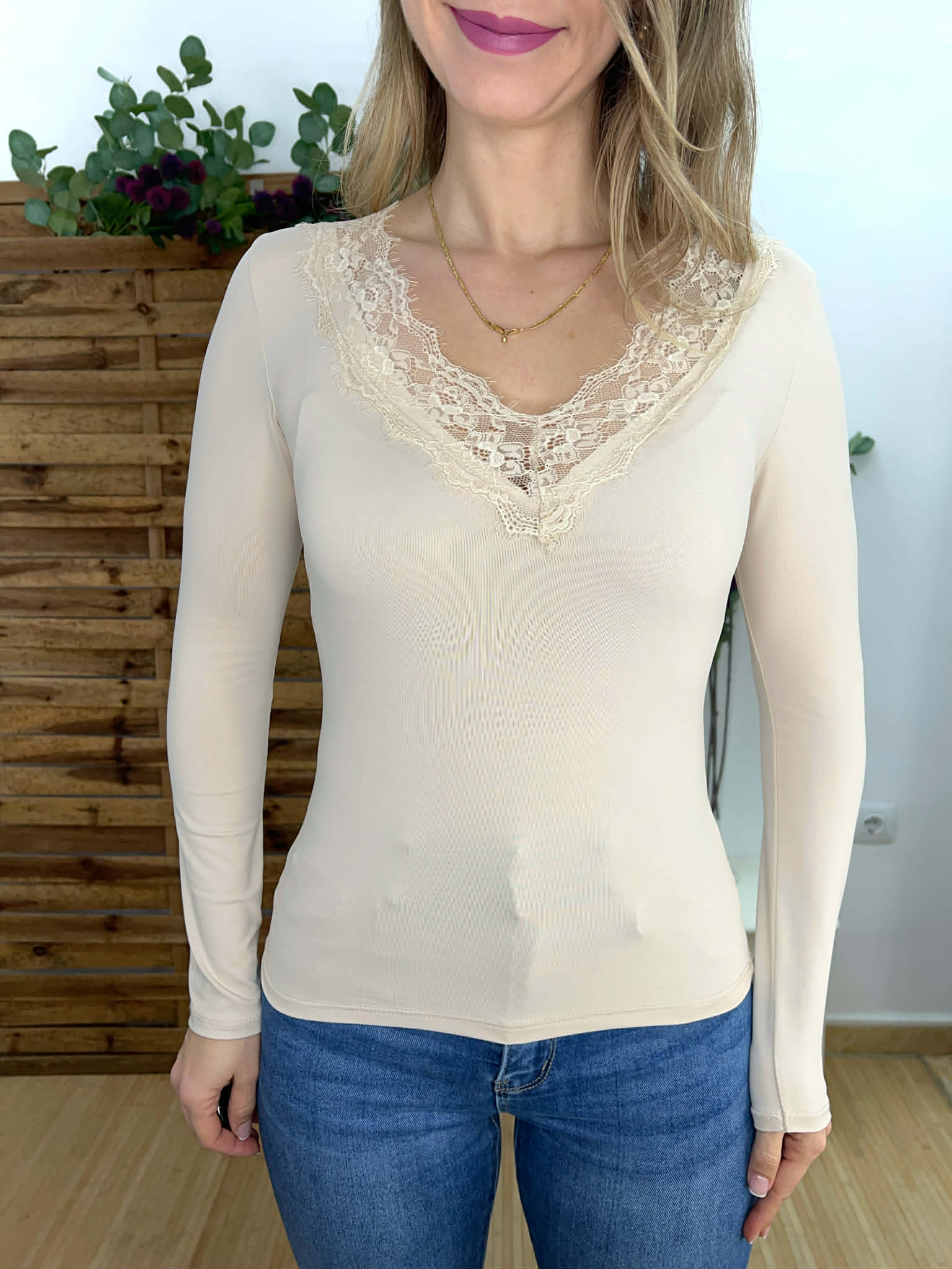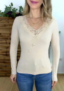 Camiseta encaje beige