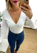 Camiseta blanca de algodón de manga larga y escote en pico.