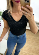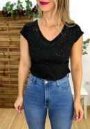 Camiseta strass negra