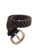 Cinturón marrón chocolate de ante con tachas y hebilla en dorado.