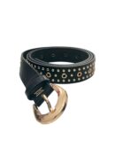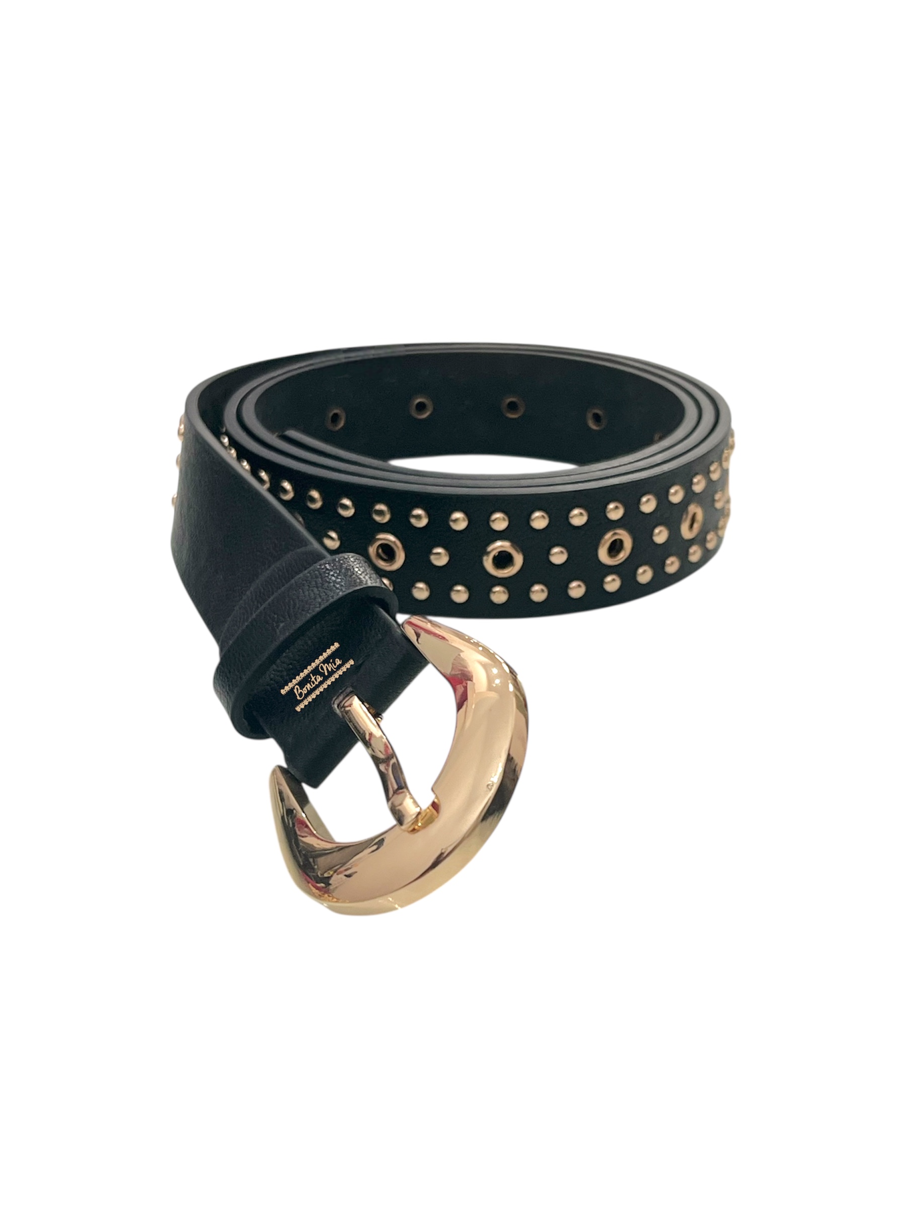 Cinturón negro de polipiel con tachas y hebilla en dorado.