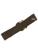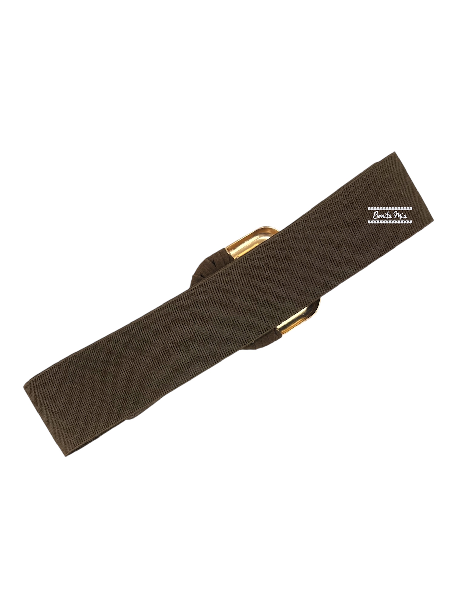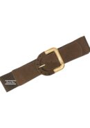 Cinturón elástico marrón chocolate de ante con cierre de hebilla dorado.