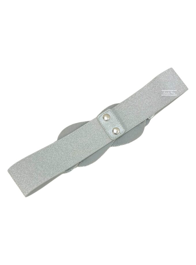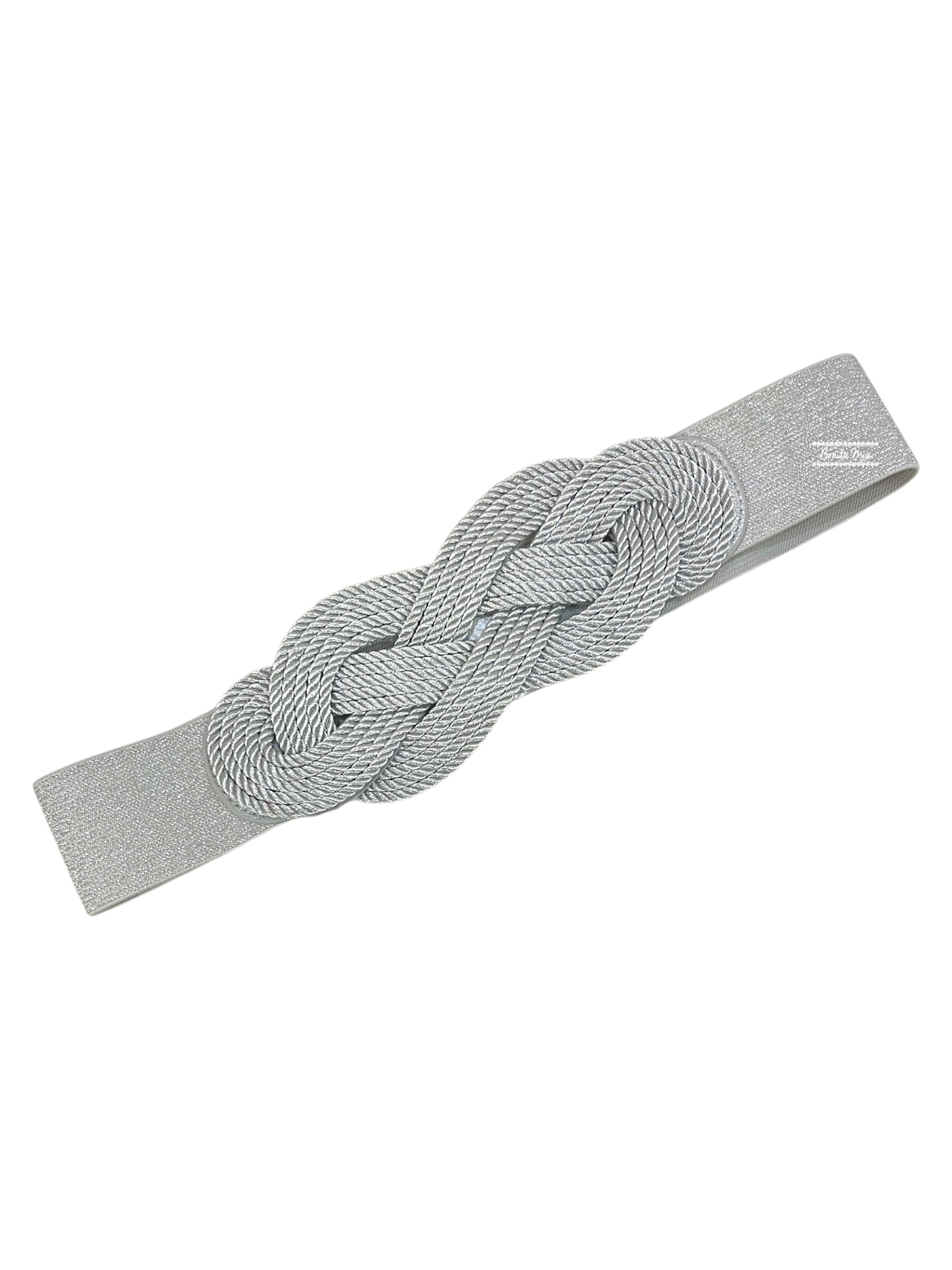 Cinturón elástico con nudo marinero en color plata. Cierre botón click.