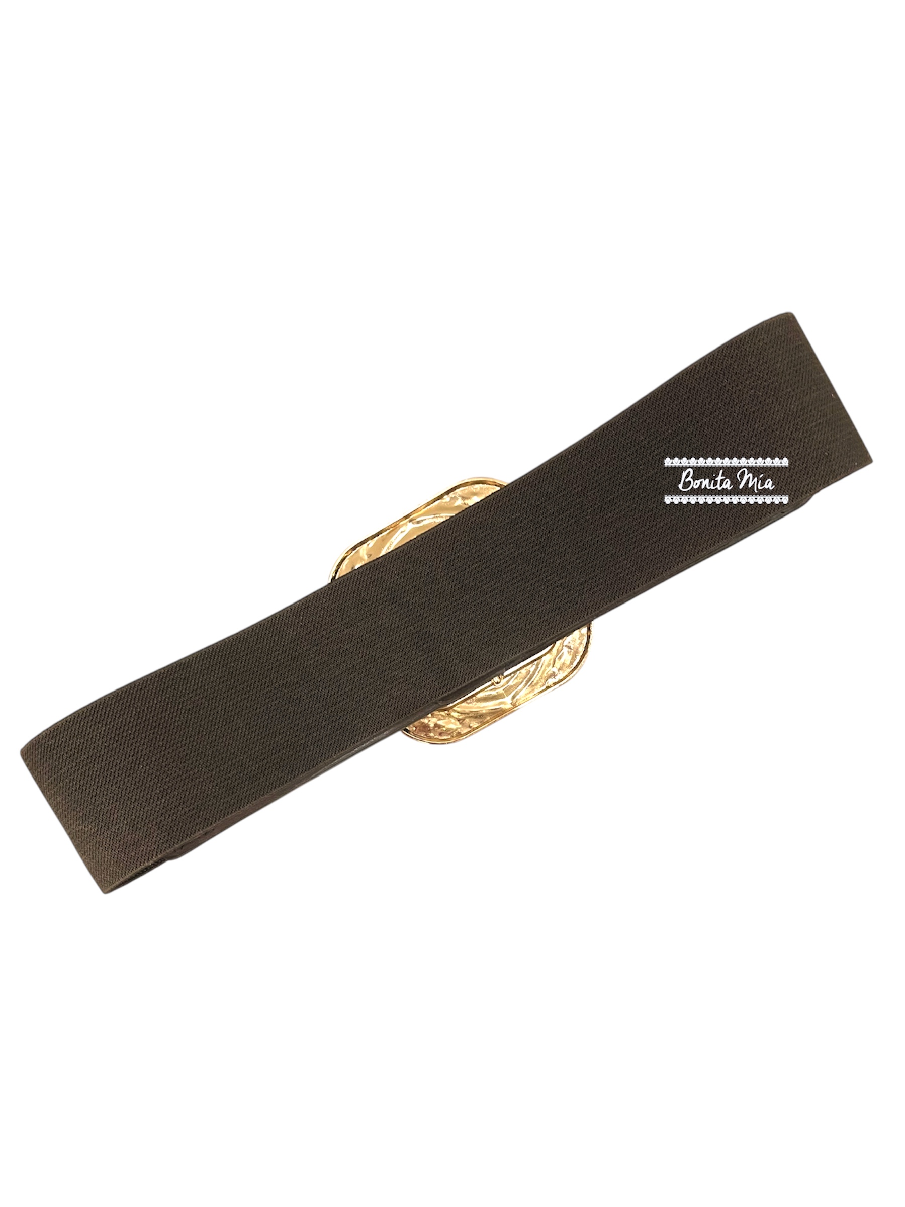 Medida aproximada: ancho cinturón 6,5 cm, ancho hebilla 9 cm, largo del cinturón 85 cm (sin estirar).