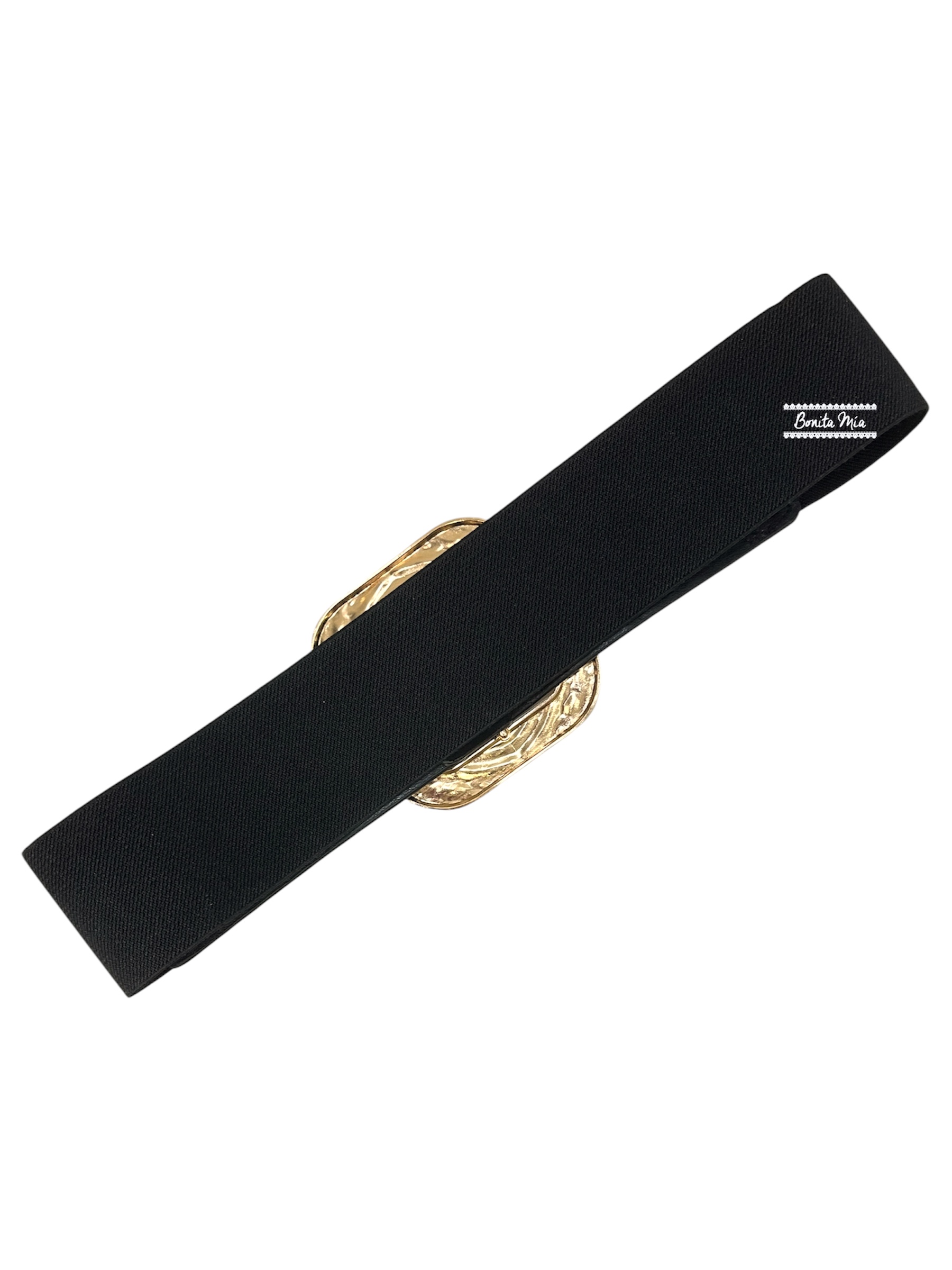 Medida aproximada: ancho cinturón 6,5 cm, ancho hebilla 9 cm, largo del cinturón 85 cm (sin estirar).