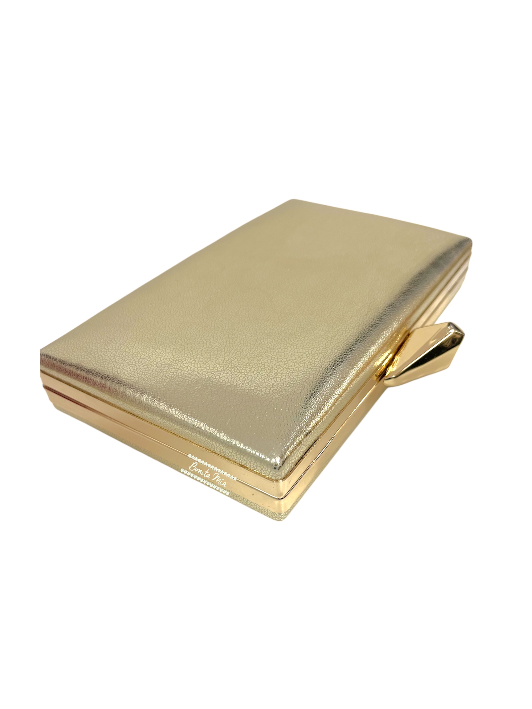 Clutch dorado liso brillante con marco en dorado. Tipo de cierre: click.