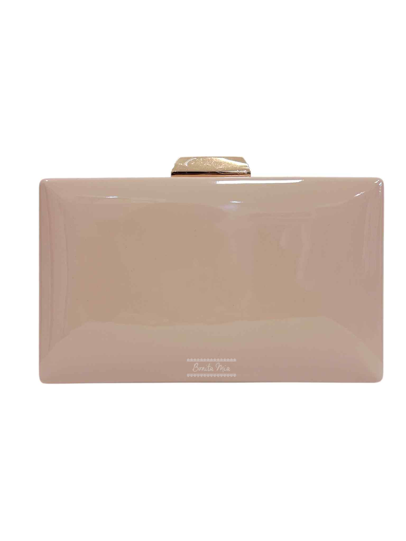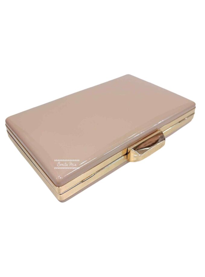 Clutch de charol nude. Incluye cadena dorada para colgar. Tipo de cierre: click.