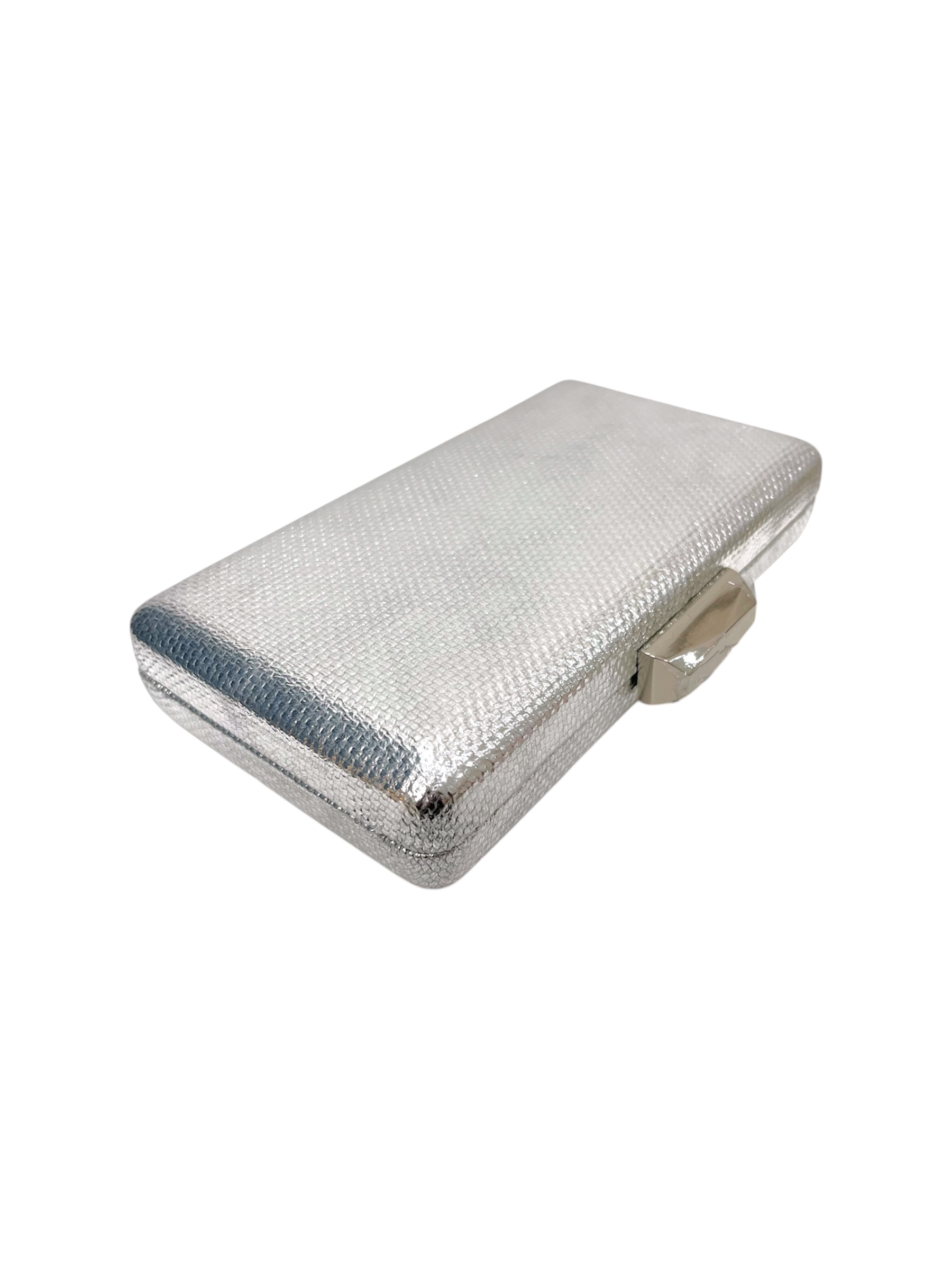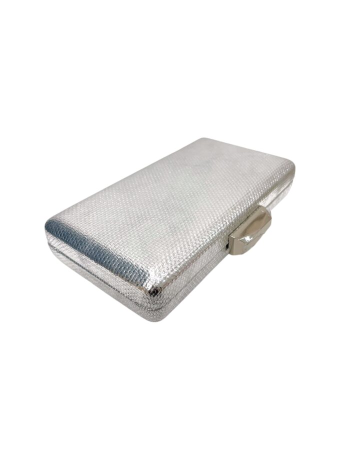 Clutch plata con textura de piel de serpiente. Incluye cadena para colgar plata.