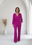 Conjunto buganvilla de blusa con lazada y pantalón de tejido fluido con goma en la cintura.