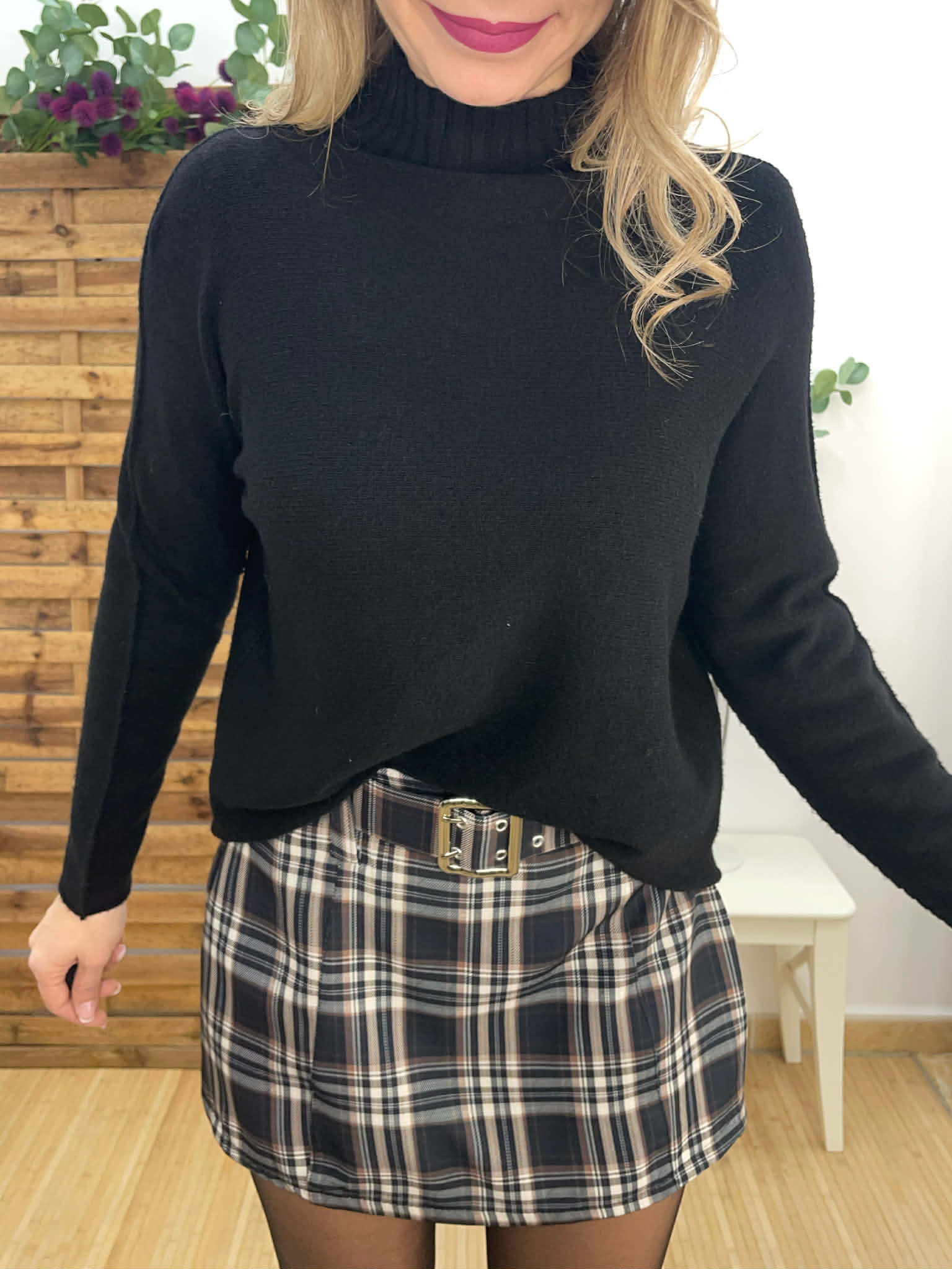 Falda pantalón cuadros negra