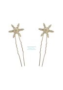 Pack de 2 horquillas de metal en color dorado en forma de estrella con cristales pequeños.