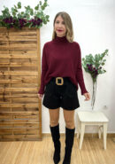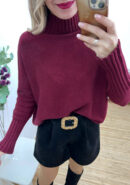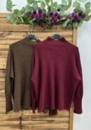 Jersey de punto con cuello perkins. Colores disponibles: burdeos y marrón chocolate.