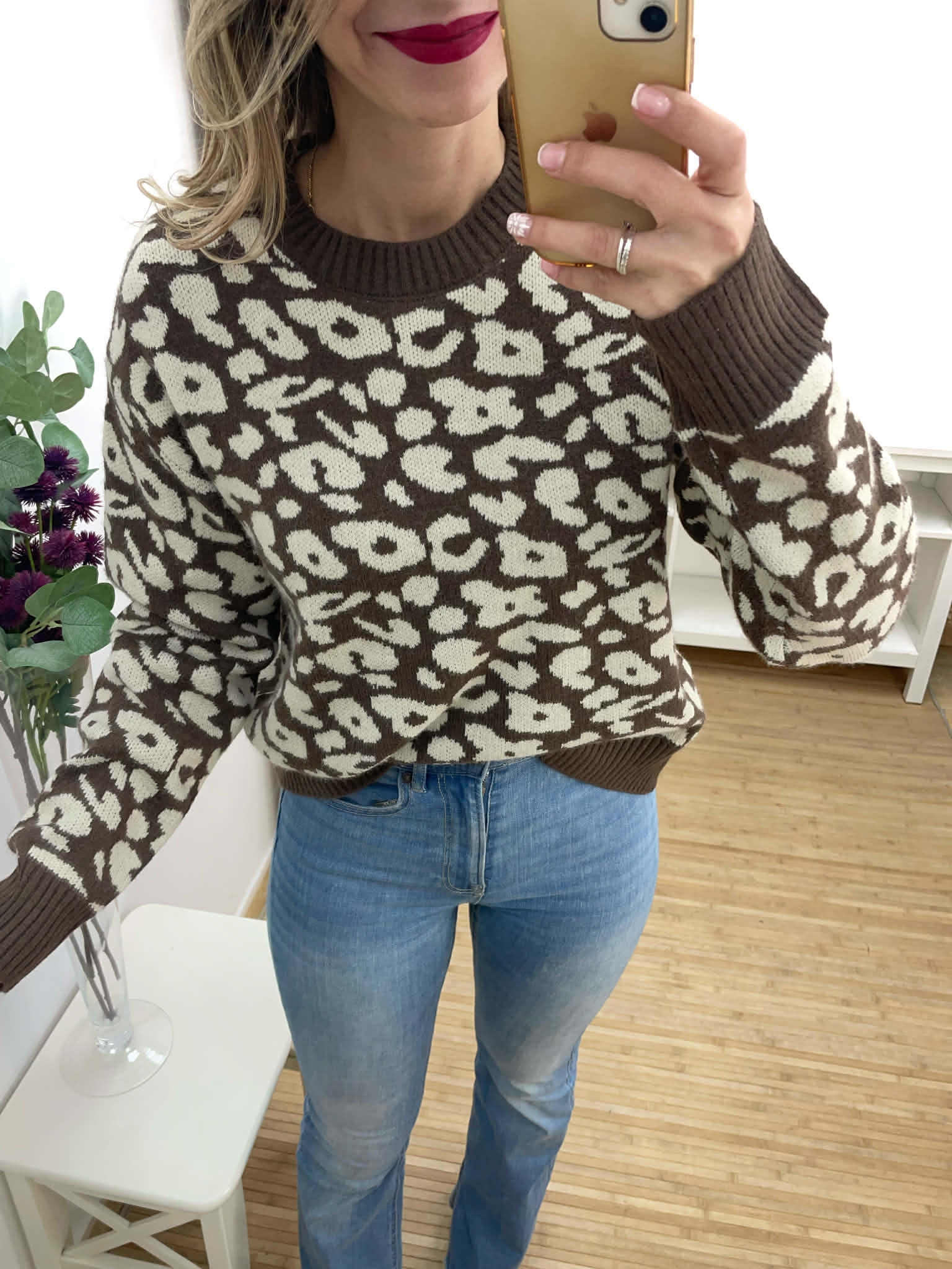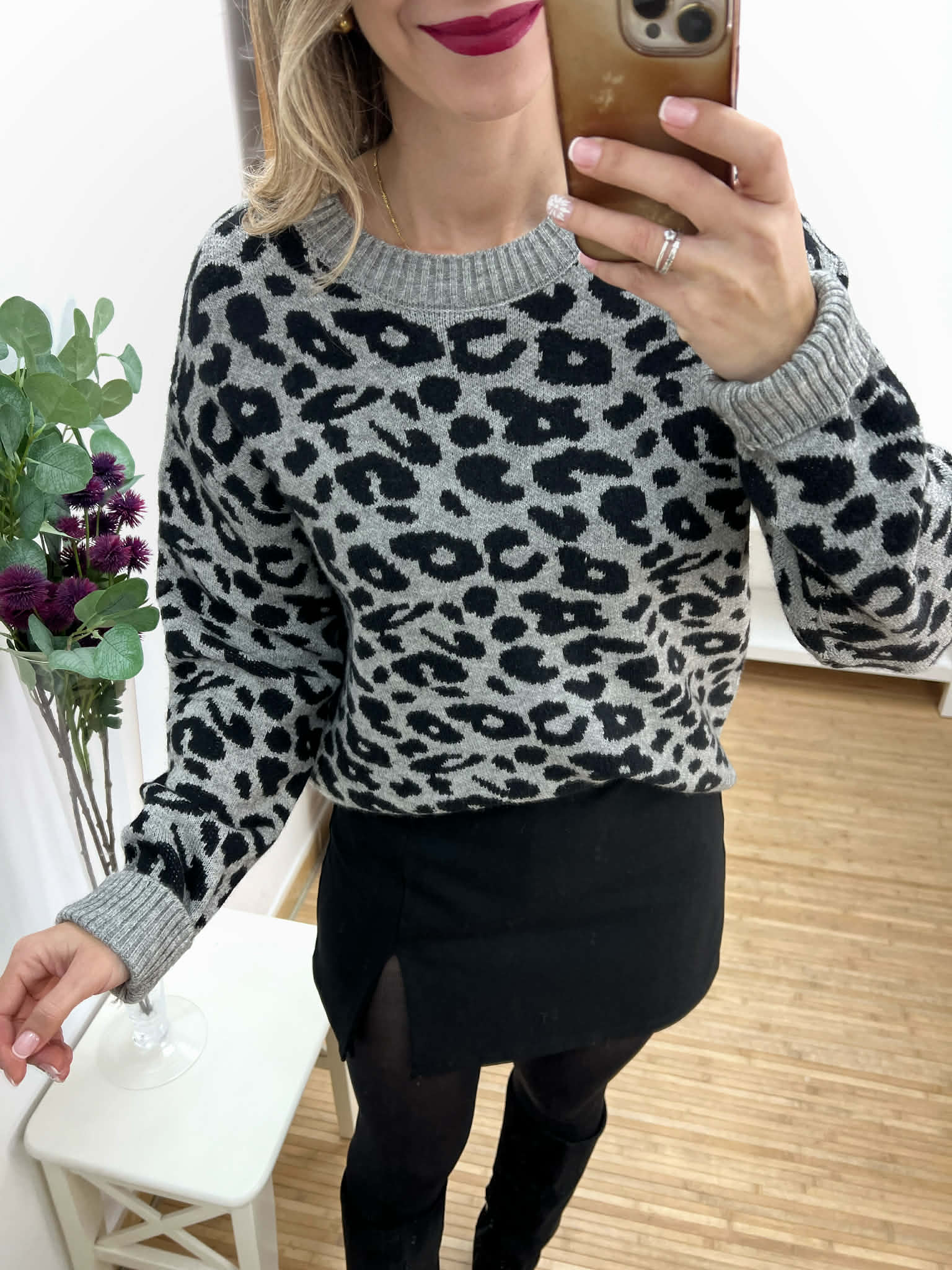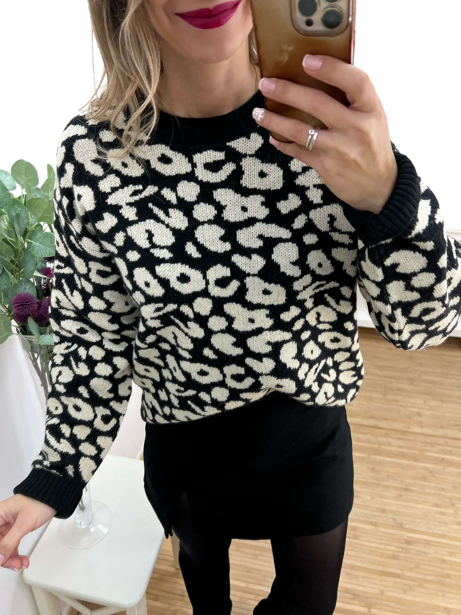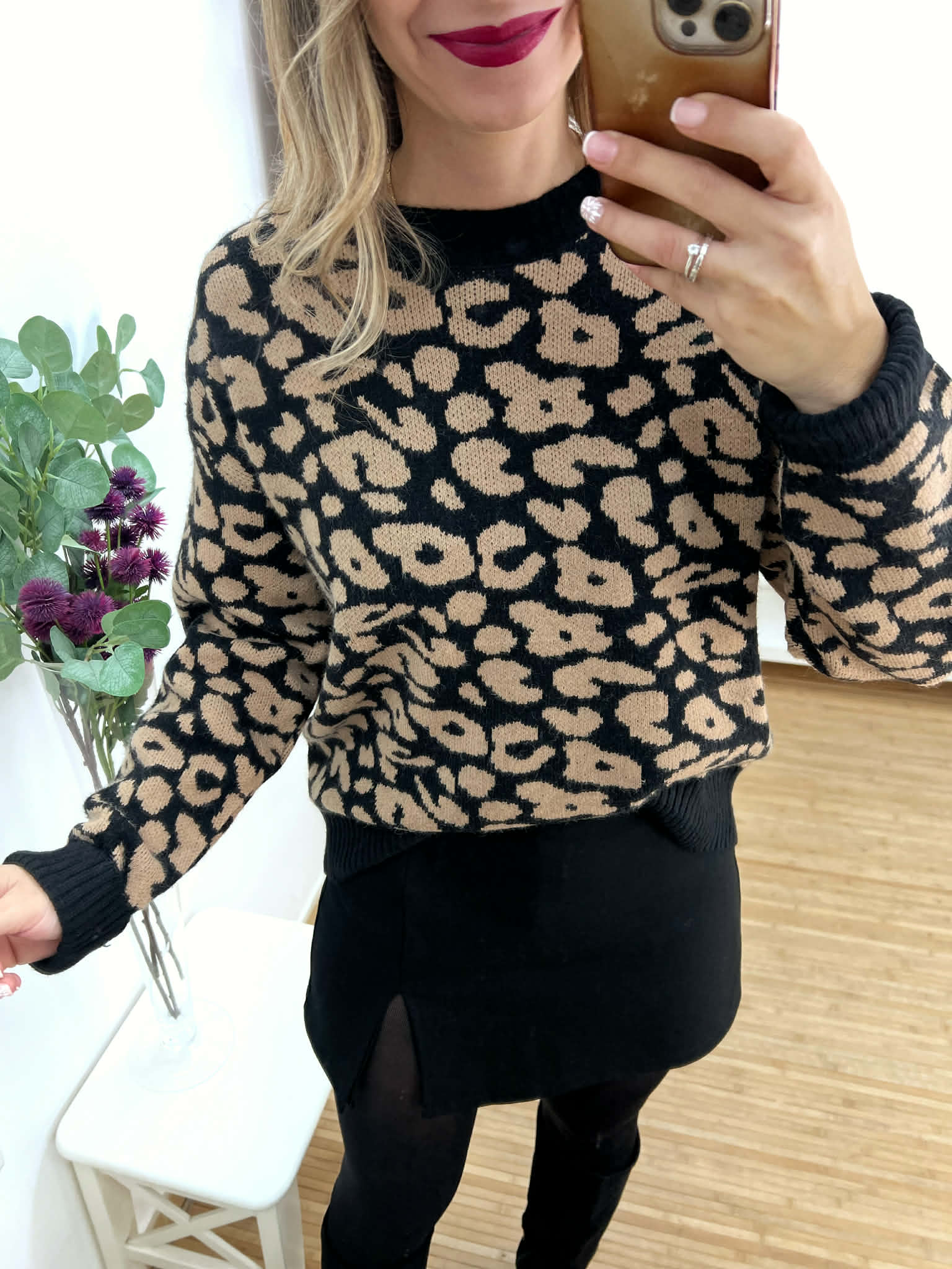 Jersey oversize de leopardo suave. Colores disponibles: camel, gris, marrón chocolate, negro y beige.