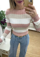 Jersey crop de rayas en tonos rosa palo, beige y blanco.