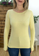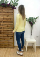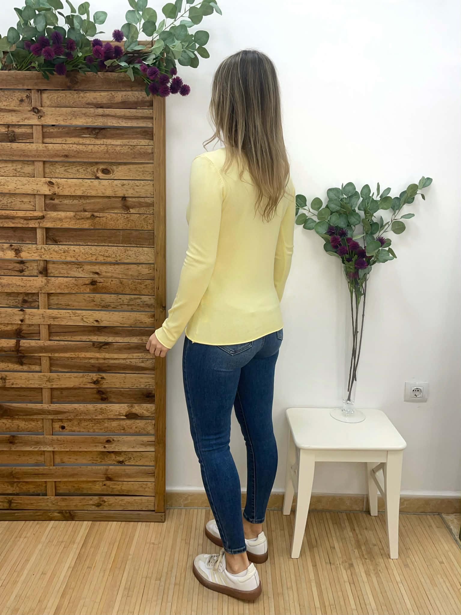 Jersey amarillo de punto fino y suave con cuello redondo.