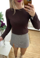 Jersey chocolate de punto fino y suave con cuello redondo.