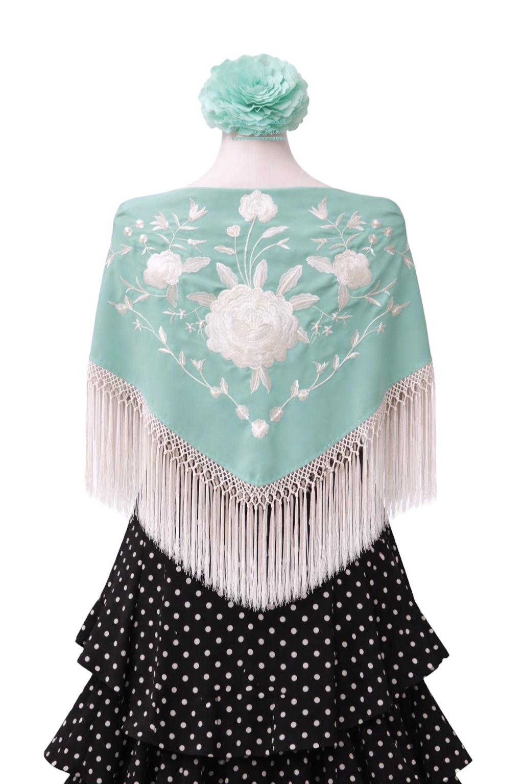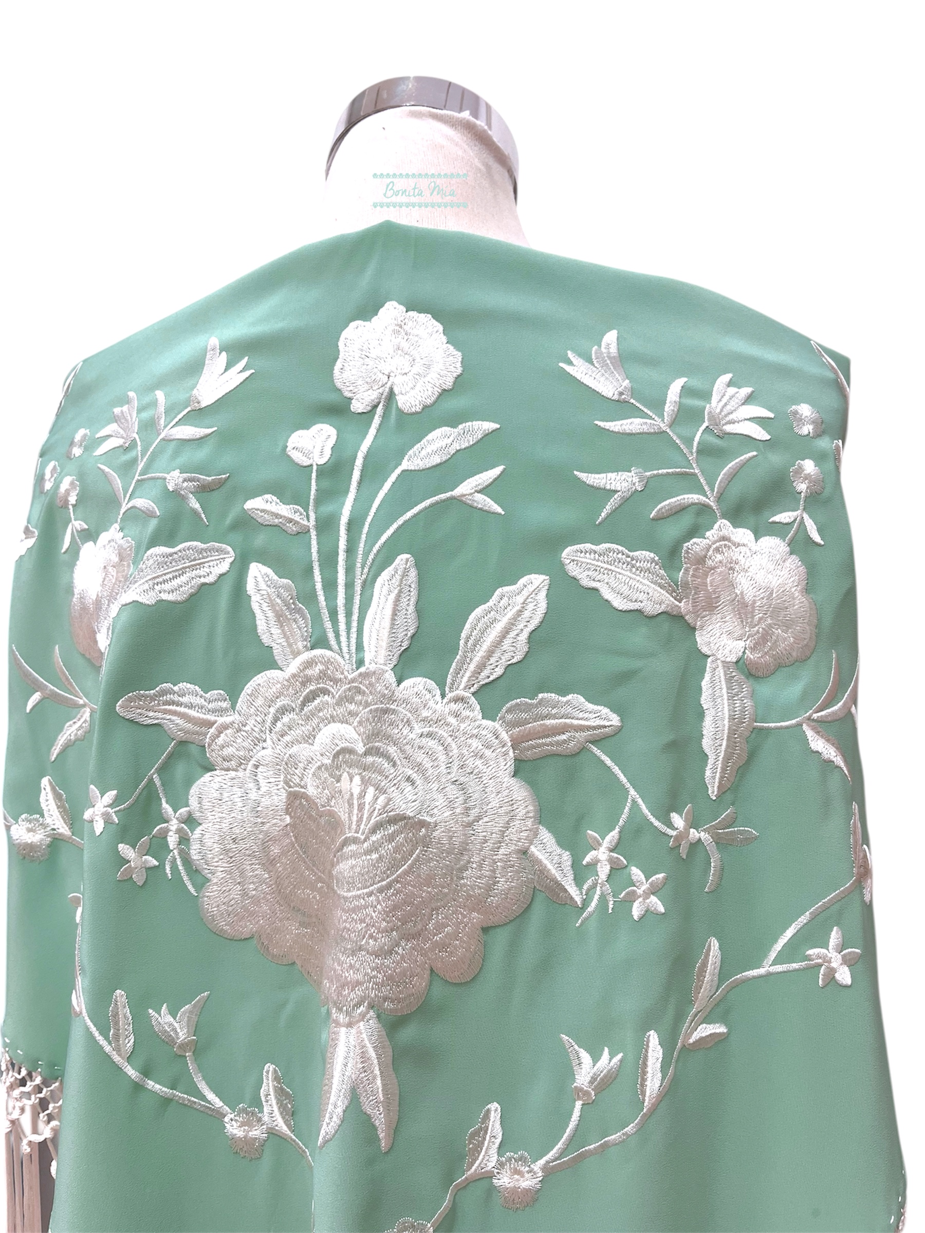 Mantoncillo bordado en color aguamarina