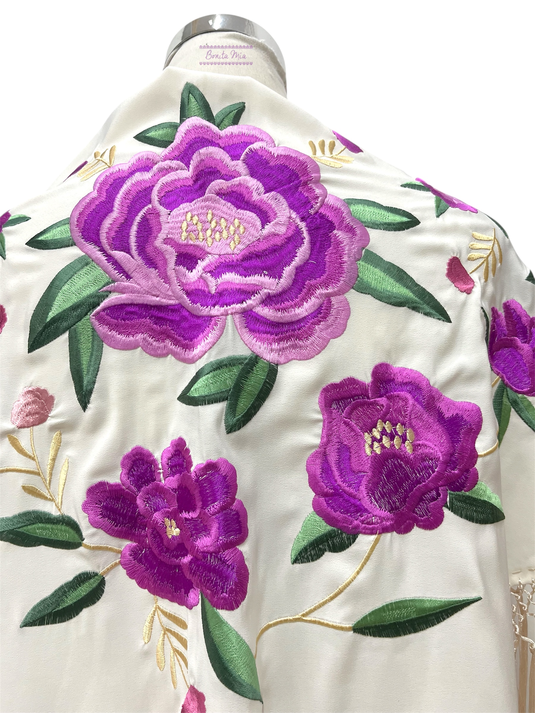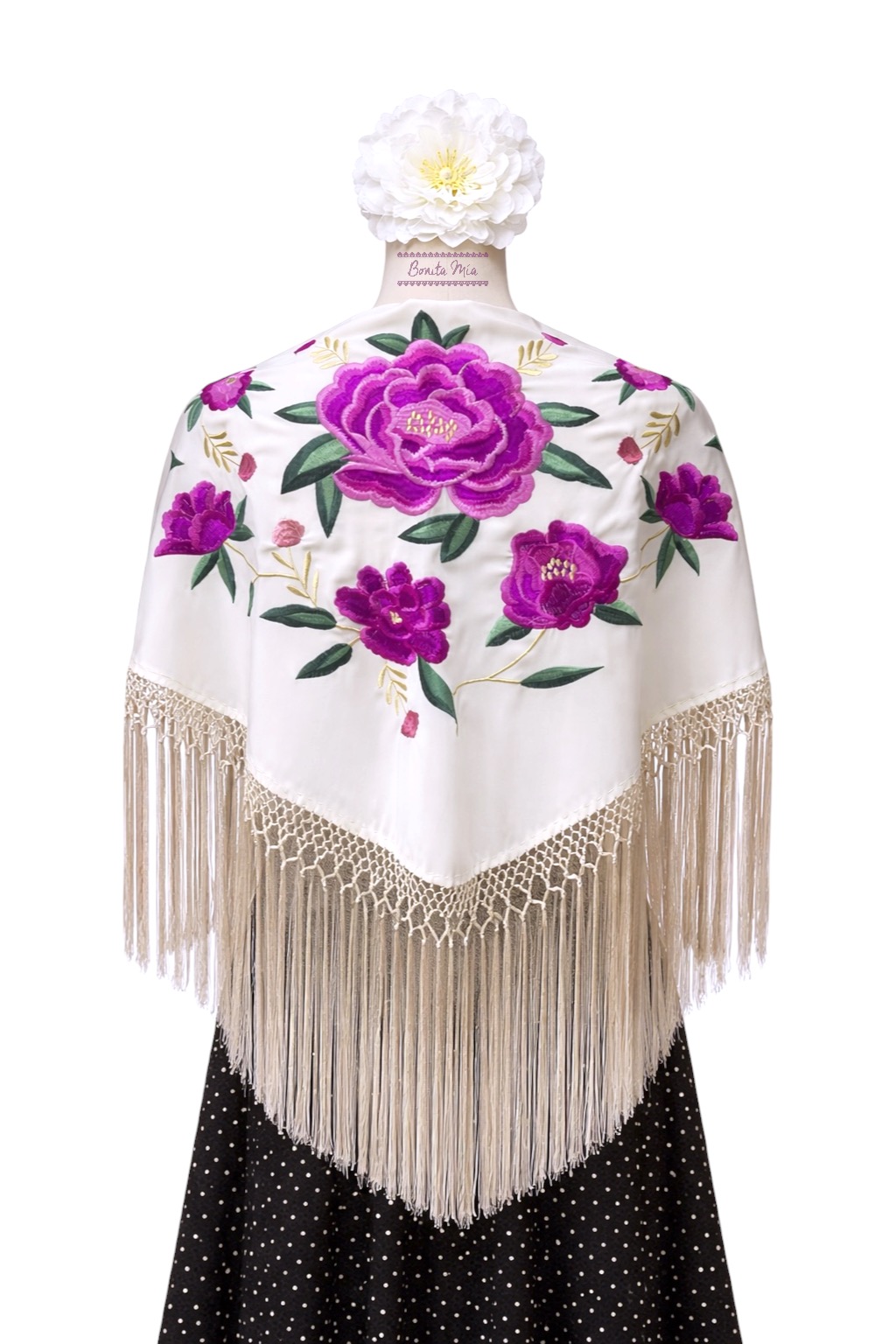 Medidas aproximadas: 137 cm ancho, 50 cm largo (sin flecos), 83(con flecos)