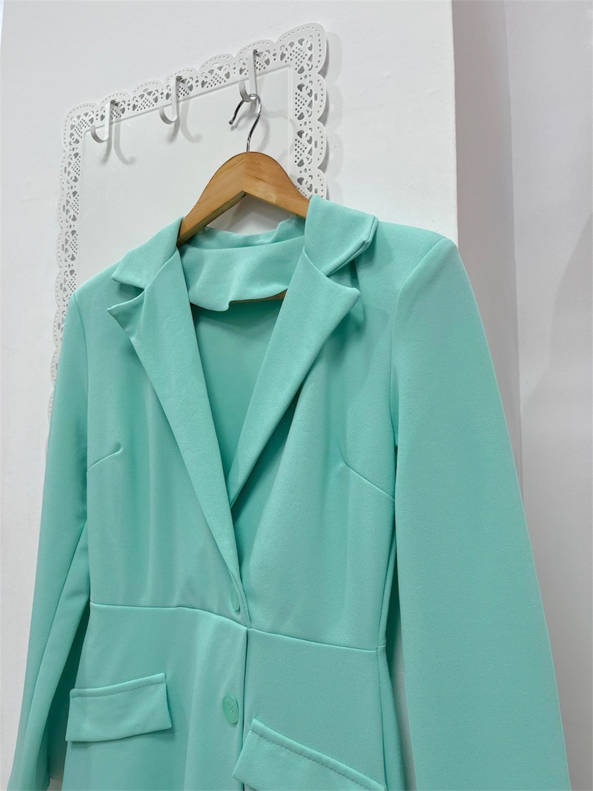 Mono corto estilo blazzer aguamarina con botones nacarados.