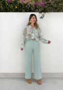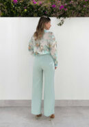 Pantalón de corte recto en color menta con bolsillos en ambos laterales y goma en la parte trasera de cintura. Perfecto para combinar con lenceras, camisas vaporosas o más atrevido con crops tops.