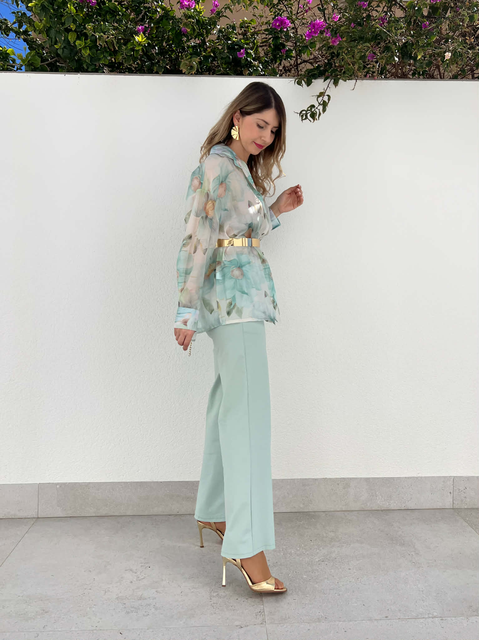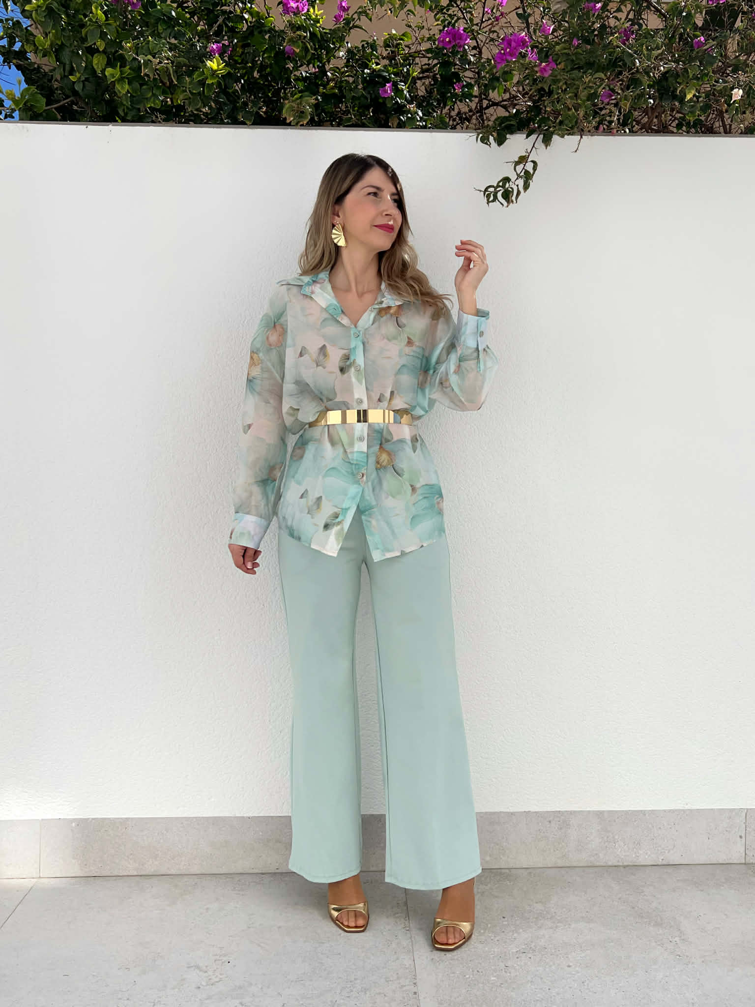 Pantalón de corte recto en color menta con bolsillos en ambos laterales y goma en la parte trasera de cintura. Perfecto para combinar con lenceras, camisas vaporosas o más atrevido con crops tops.