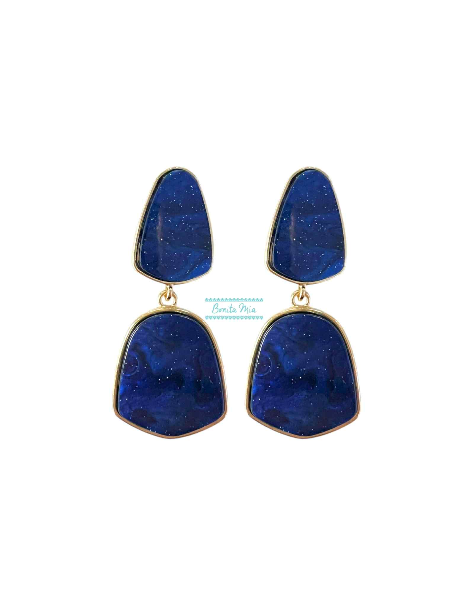 Pendientes azul nacarados con brillo y engarces dorados. Tipo de cierre: presión.