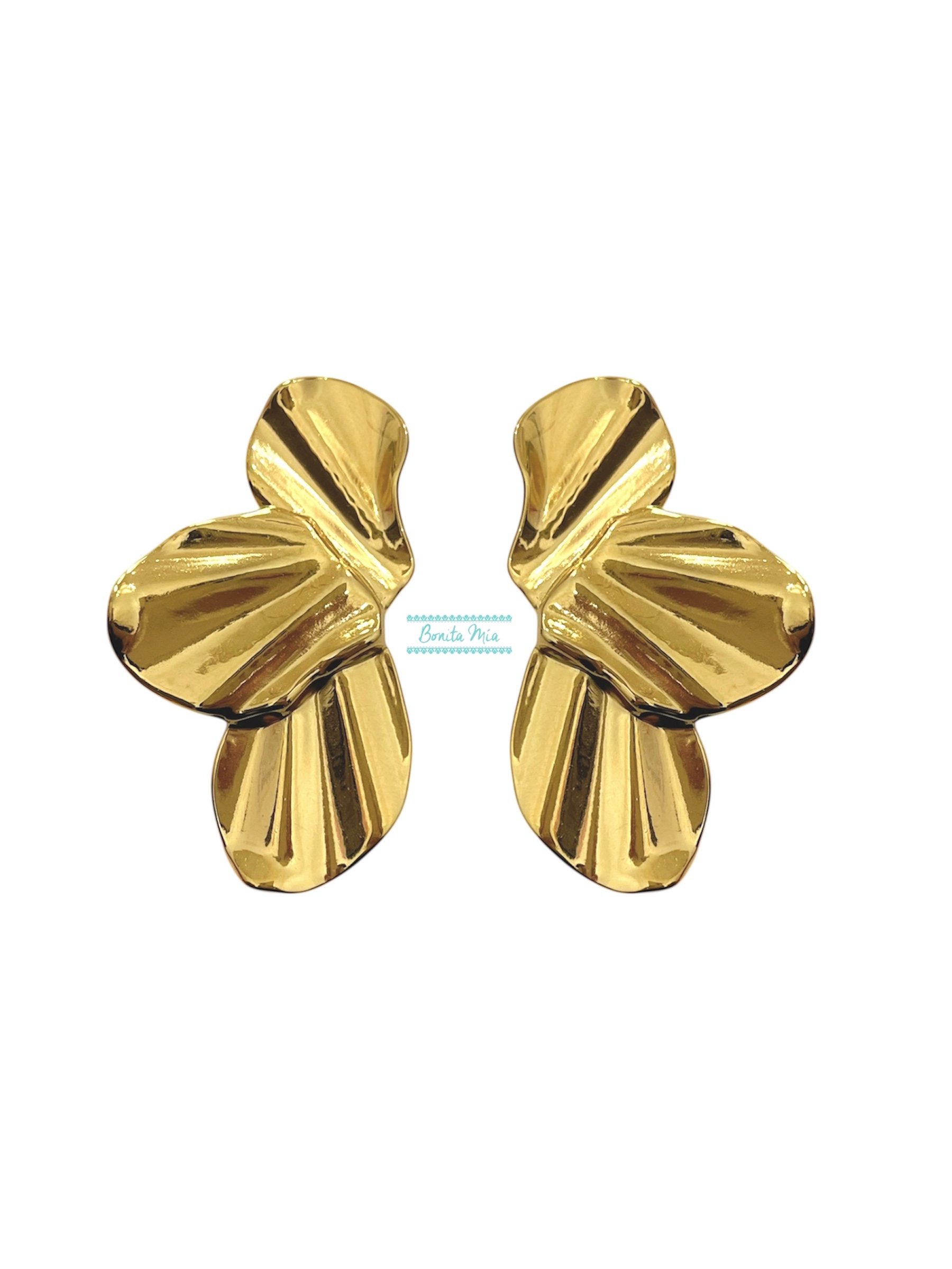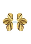 Pendientes dorados en forma de media flor con textura. Acero inoxidable.