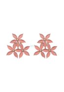 Pendientes con tres mini flores de cristales en color rosa palo. Tipo de cierre: presión. Engarces en tono dorado.