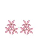 Pendientes con tres mini flores de cristales en color rosa palo. Tipo de cierre: presión. Engarces en tono dorado.