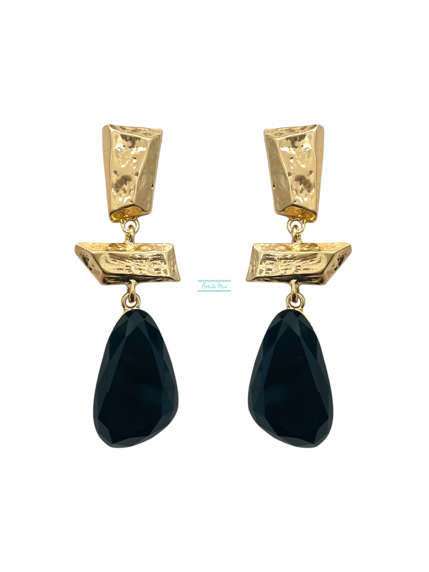 Pendientes en tono dorado con piedra negra en el final. Peso muy ligero.