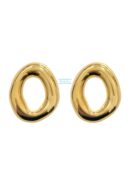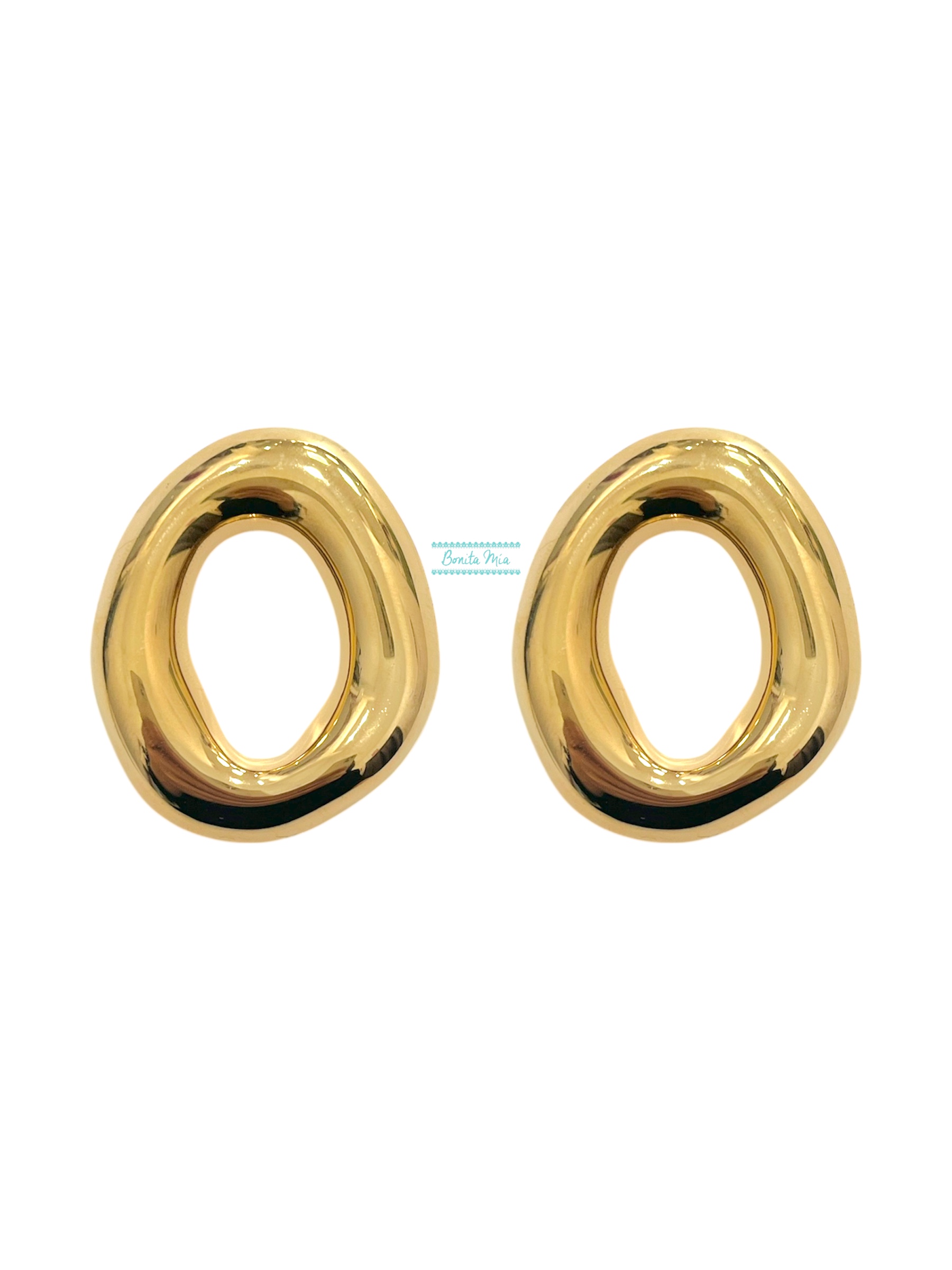 Pendientes dorados con forma ovalada irregular gruesos en relieve. Acero inoxidable.