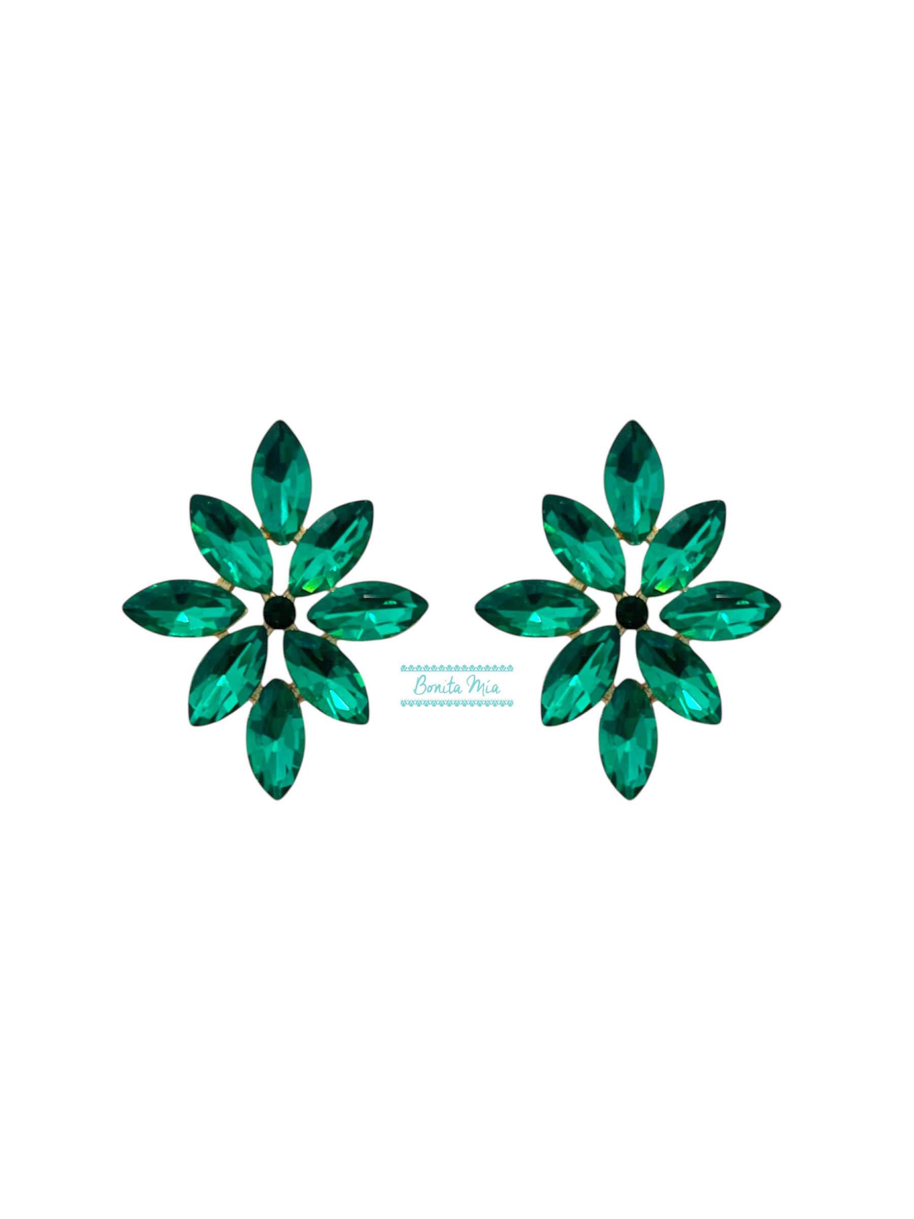 Pendientes verde esmeralda de cristales en forma de mini lágrimas. Tipo de cierre: presión.