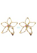 Pendientes de flor dorado con mini abalorios multicolor. Peso muy ligero.