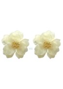 Pendientes de flor beige con detalle de dorado. Material resina, peso ligero.