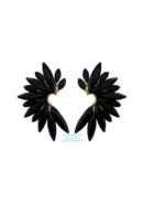 Pendientes con forma de media luna y cristales color negro con engarce en dorado.