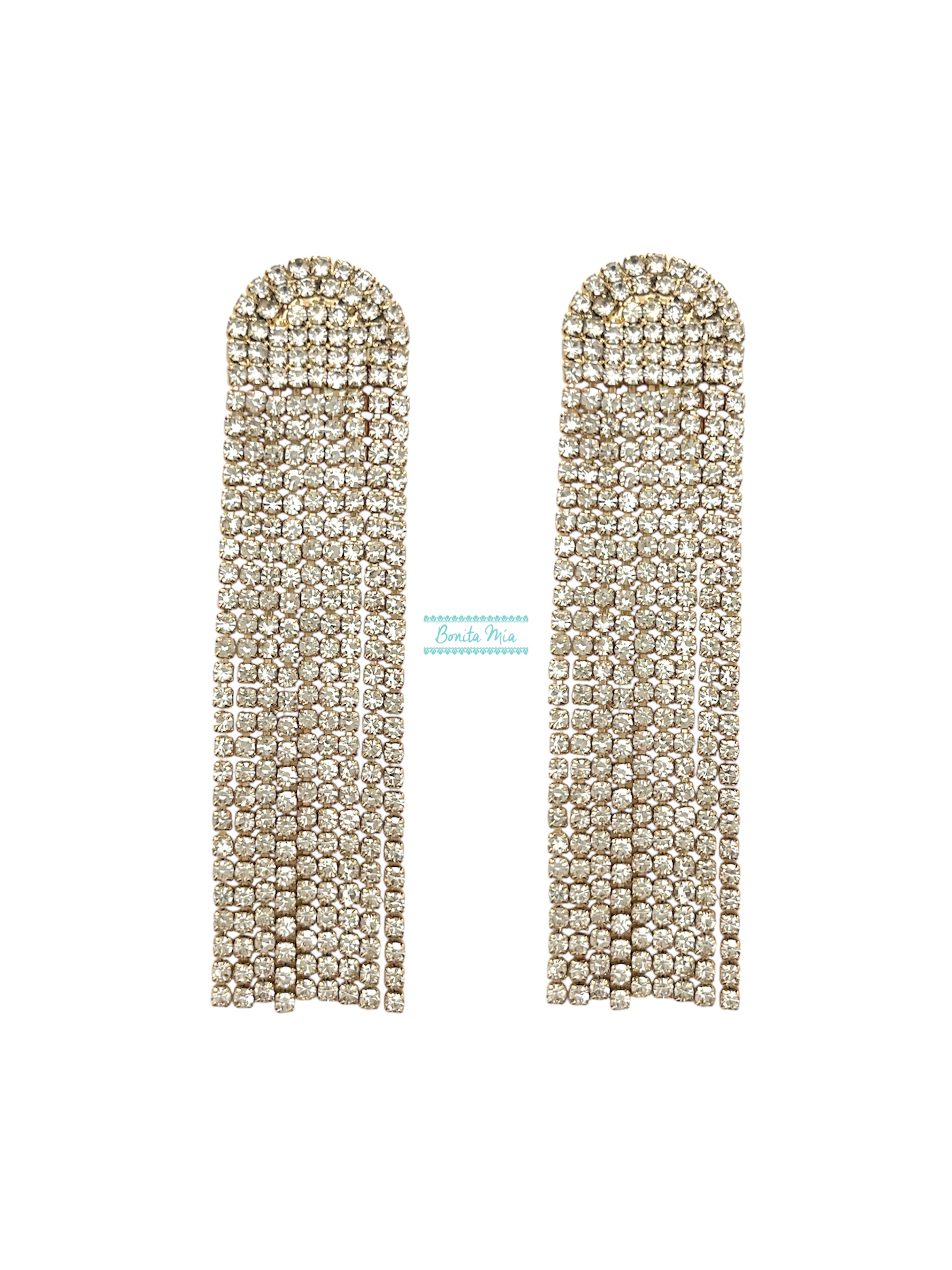 Pendientes strass en óvalo y tono dorado con pequeñas piedras. Tipo de cierre: presión.