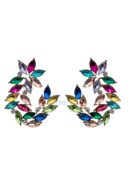 Pendientes de cristales multicolor (azul, buganvilla, lila…) y mini cristales blancos, engarzados con dorado.