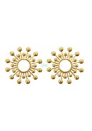 Pendientes dorados en forma de sol. Tipo de cierre: presión. Acero inoxidable.