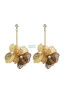 Pendientes dorados de tres flores y detalle de cristal. Peso muy ligero.
